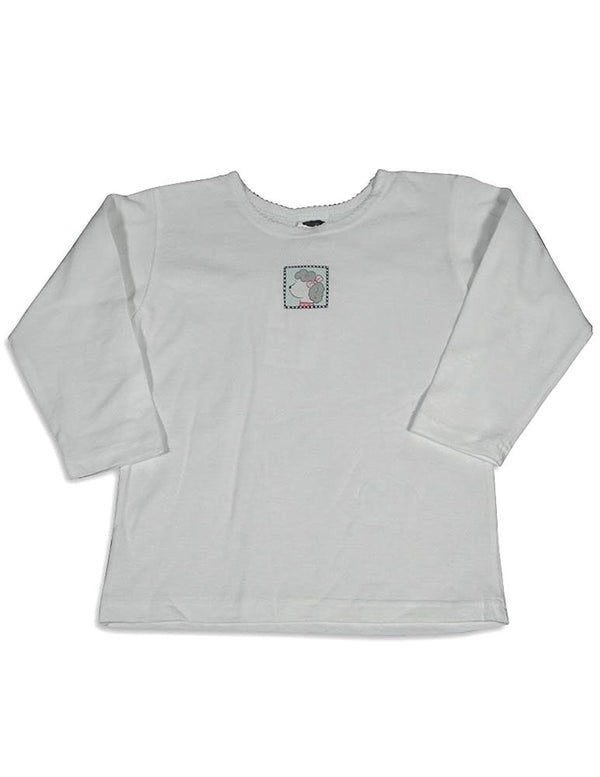 Mulberribush - Girls Long Sleeve Poodle Shirt, White, Picot Stitching Neck, Screen Printed Poodle Graphic, 100% Cotton, Made In USA, #26951 26-951