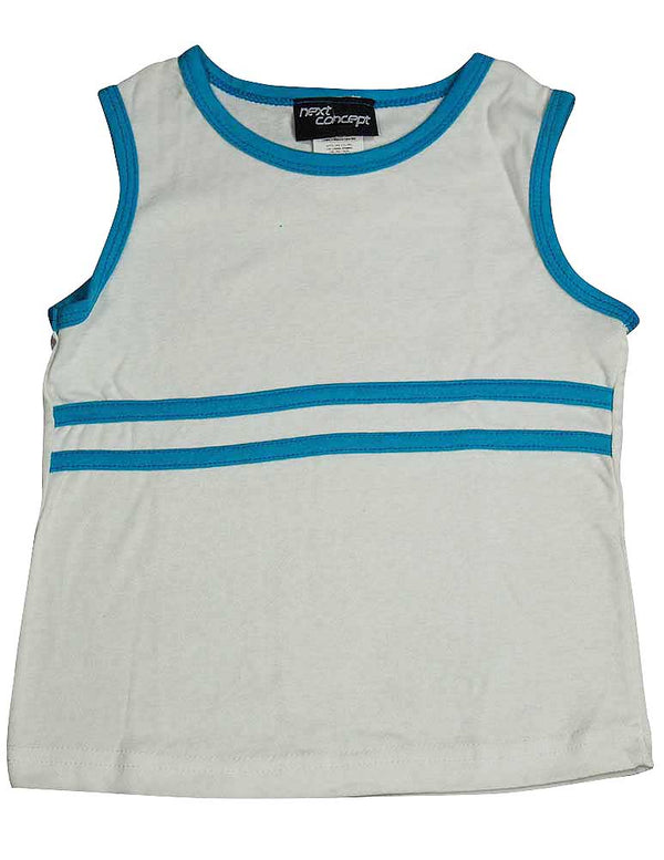 Next Concept - Girls Double Strip Tank, White, Blue, Contrastin Trim at Neck and Armholes, 100% Cotton, #9480