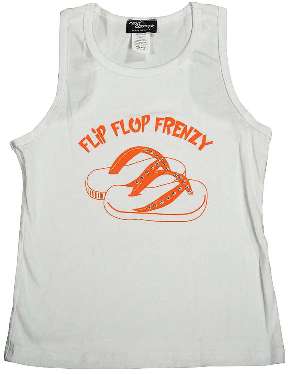 Next Concept - Toddler Girls Screen Painted Tank, White, Orange, Flip Flop Design with Glitter Paint, Racerback Style, 100% Cotton, #9428