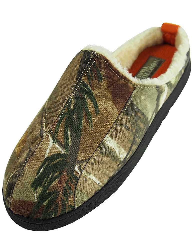 Northern Trail - Mens Camouflage Clog Slipper, Olive, Realtree Print, Faux Sherpa Lining, Clog Style, Cushioned Footbed, Heel Tab, Indoor Outdoor Sole, Size vS = 7/8 M= 9/10 L = 11/12 XL = 13, Upper 60% Cotton 40% Polyester Balance Man Made, Made in China, #37273 37-273