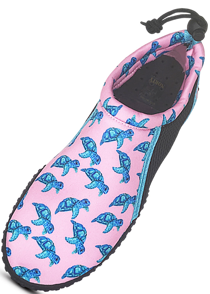 If your family loves to be active in the water, you'll appreciate how the Norty Water Socks hug your child?s feet. Breathable mesh allows water and air to flow freely - which helps the shoes dry fast. Stretchable neoprene uppers provide a protective layer but are easy to slip on and off even when wet. The handy ankle pull tab helps with easy on and off.