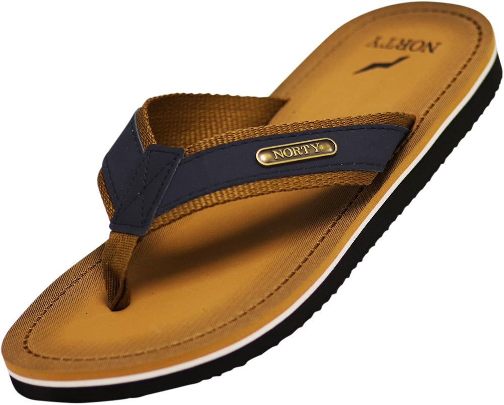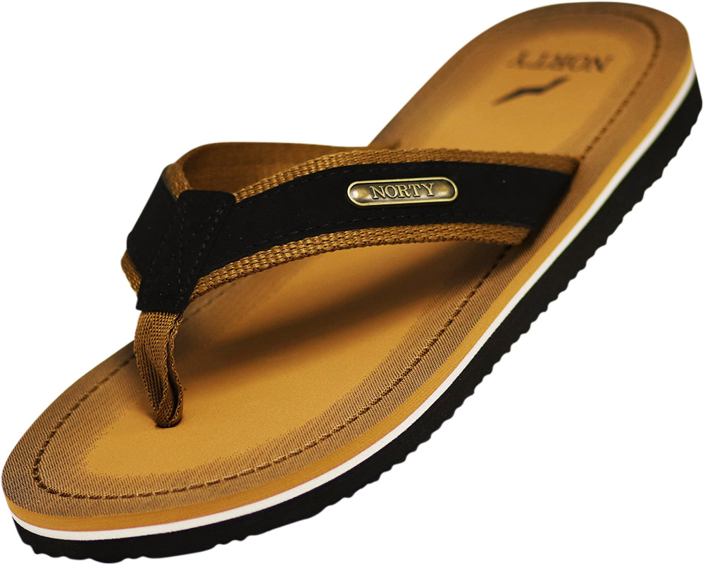 Elevate your casual style with the NORTY Men's Sandals. Crafted with a comfortable foam footbed and a durable rubber sole, these flip-flop thong shoes offer excellent traction and stability for indoor, outdoor, and beach wear. The woven fabric or faux leather straps feature a soft fabric lining for added comfort, while the fabric toe post provides a secure and customized fit. Suitable for a variety of occasions, these versatile sandals are a must-have for the modern man seeking a blend of fashion and function.