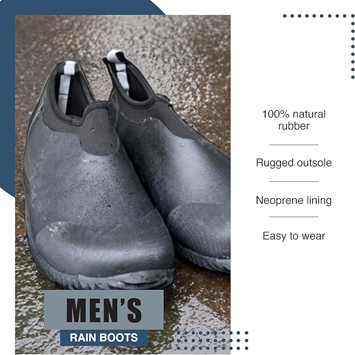 NORTY Rubber Waterproof Garden Ankle Rain Shoes for Men - Runs 1-2 Sizes Big