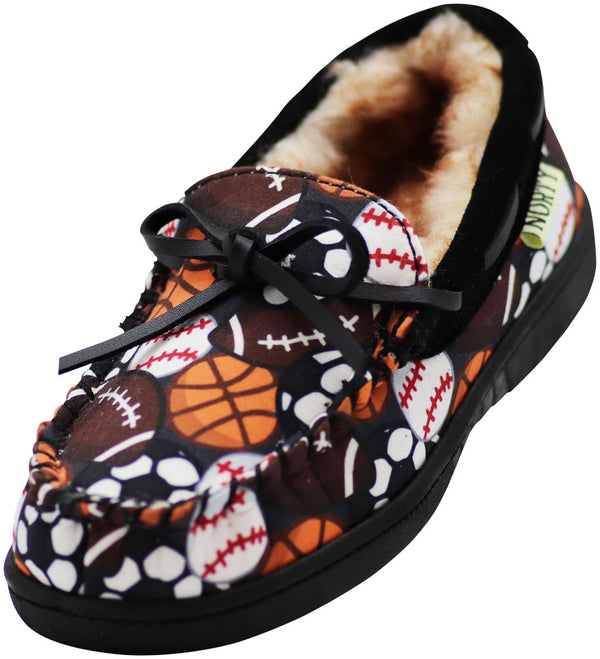 NORTY Toddler Boys Girls Fabric Printed Suede Trim Moccasin Slippers - Runs 2 Sizes Small