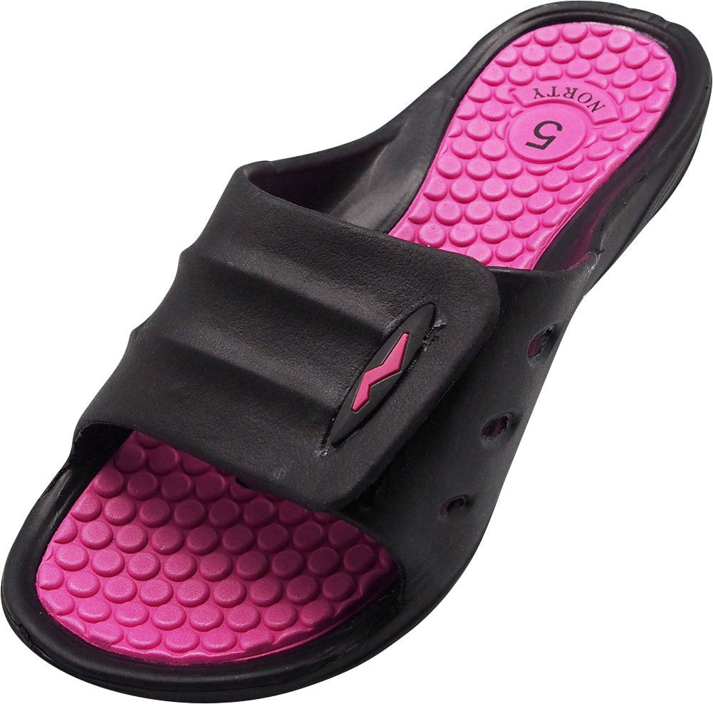Norty Womens Summer Comfort Casual Slide Flat Strap Shower Sandals Slip On Shoes