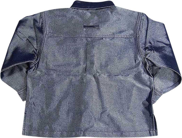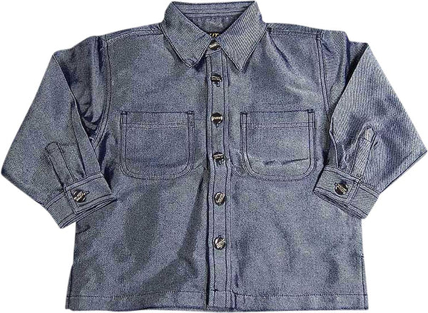 Outech - Boys Long Sleeved Twill Shirt Jacket, Blue Silver Shimmer, Button Front and Cuffs, Breast Pockets, Side Slits, 60% Cotton 40% Poly, #6735