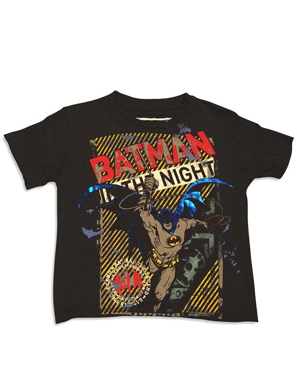 Payable To - Toddler Boys Short Sleeve Batman T-Shirt, Black, Ribbed Crewneck, Batman Graphic, Unfinished Vintage Edging, Extra Soft Feel, 100% Cotton, Made In Guatemala, #31071 31-071