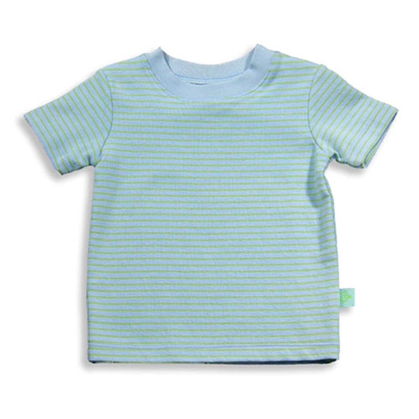 Pepper Toes Layette by Baby Lulu - Newborn Boys Short Sleeve Striped Top, Blue, Celery, Ribbed Crewneck, 100% Cotton, #17034