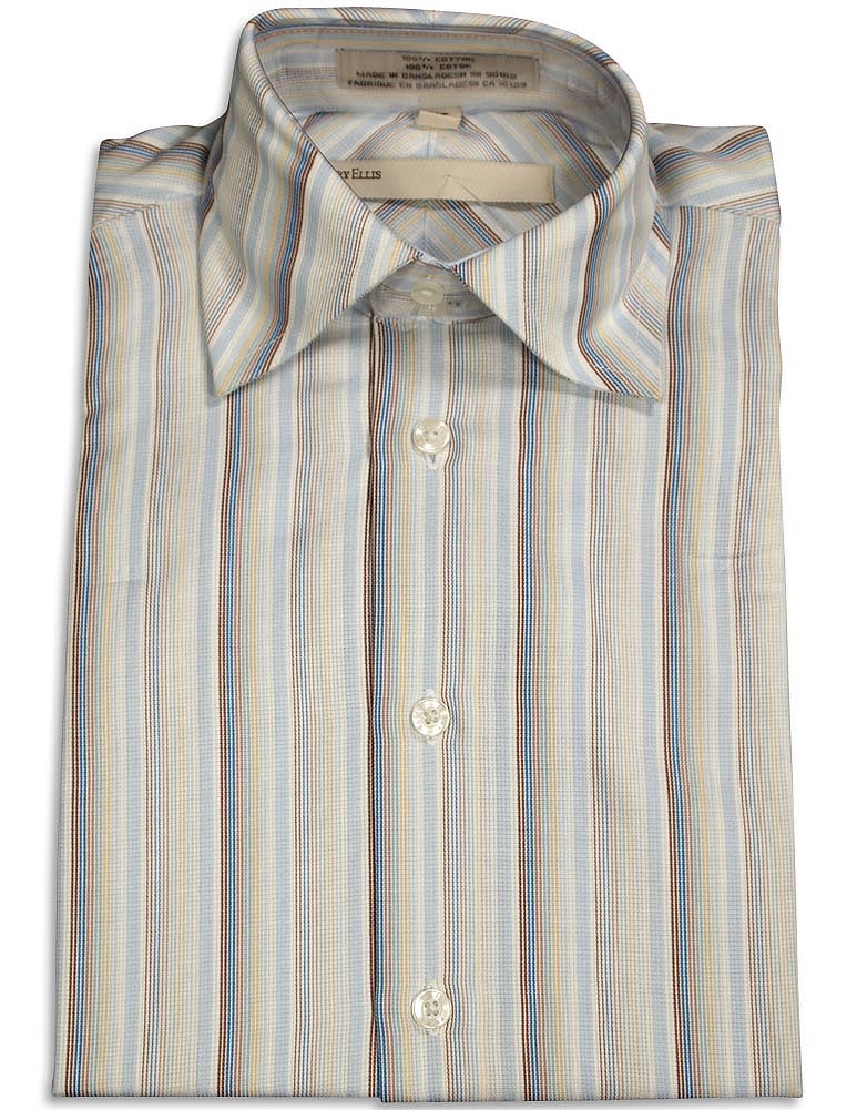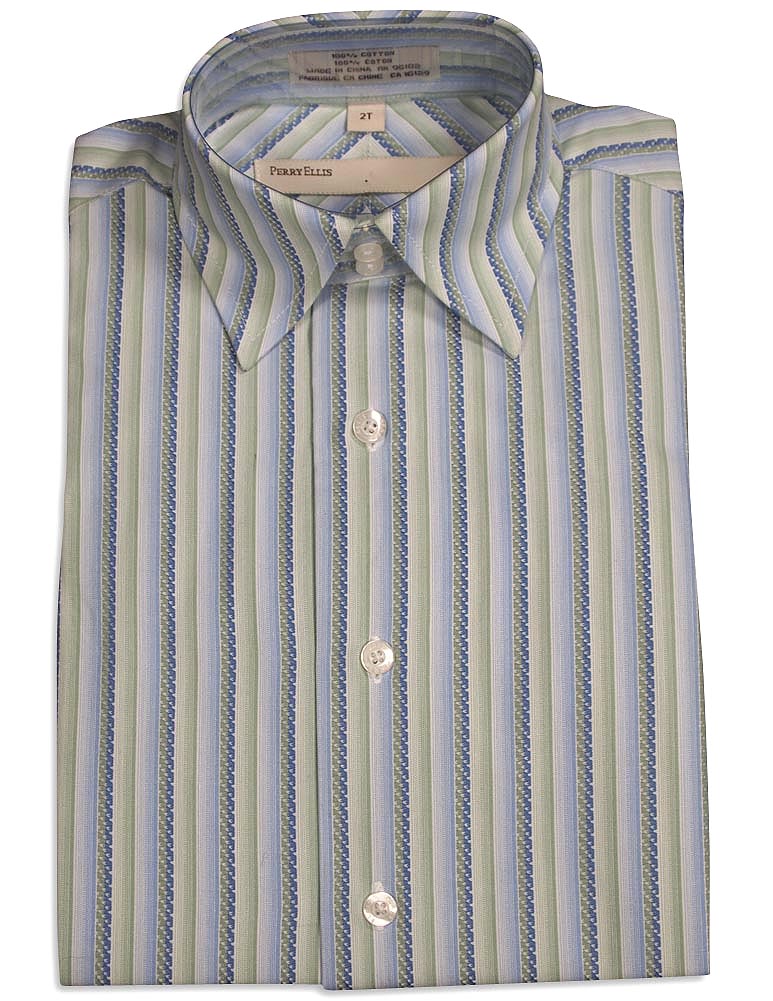 Perry Ellis - Toddler Boys Long Sleeve Dress Shirt, Blue, Brown, Yellow, Point Collar, 2 Button Neck Closure, Stripe, 100% Cotton, Made in Bangladesh, #31557 31-557