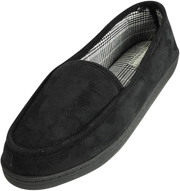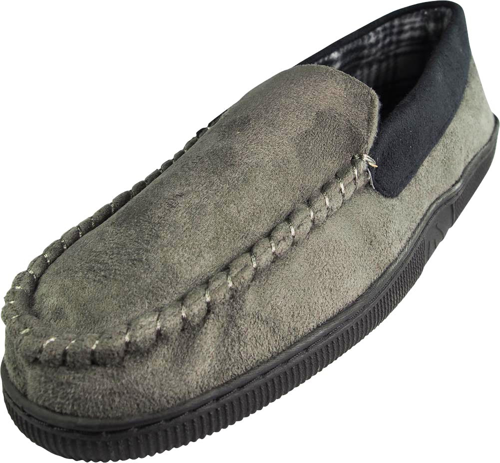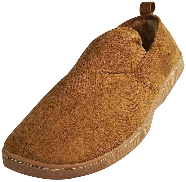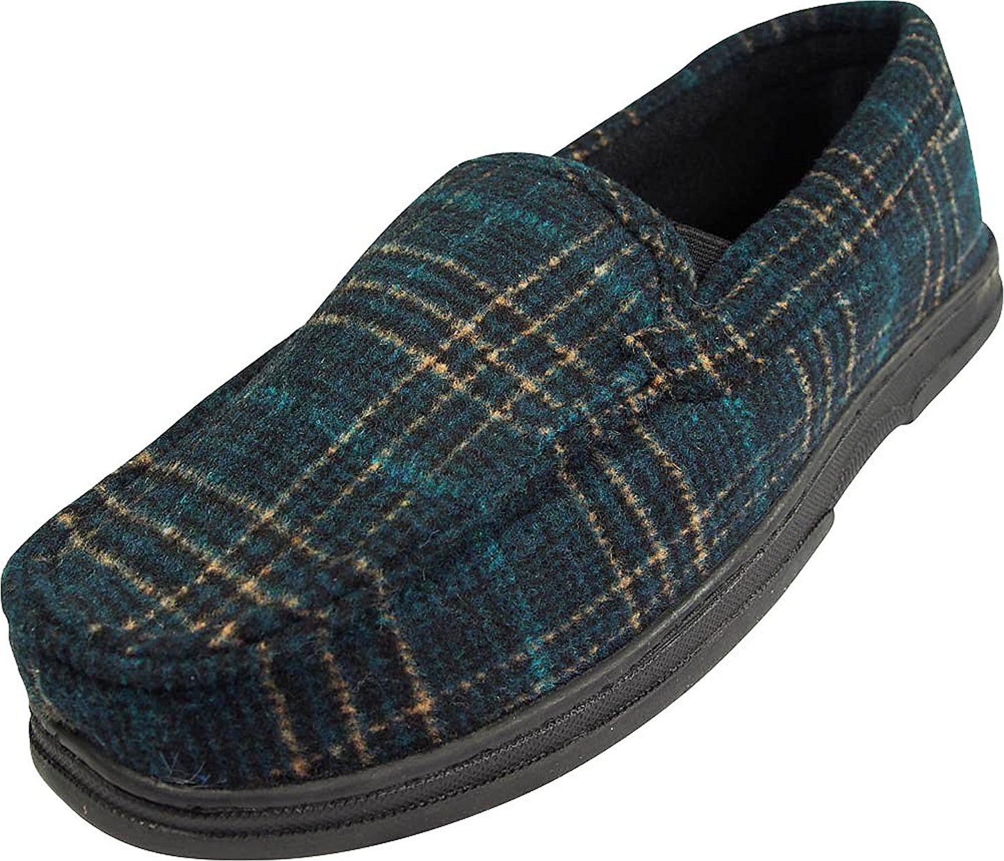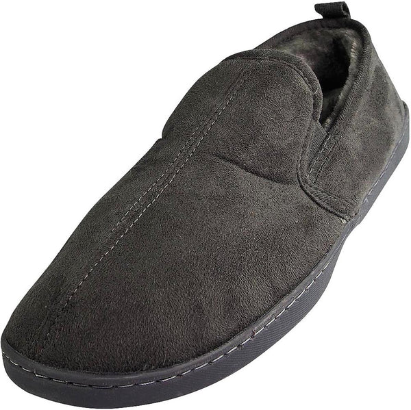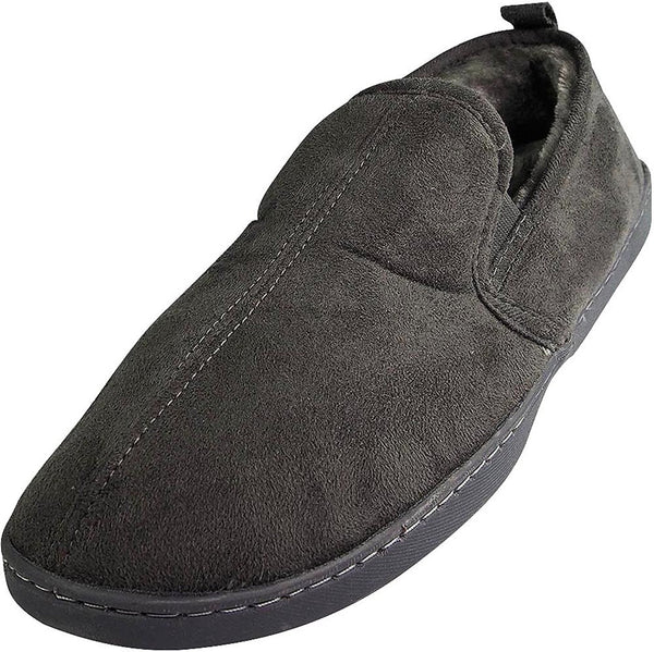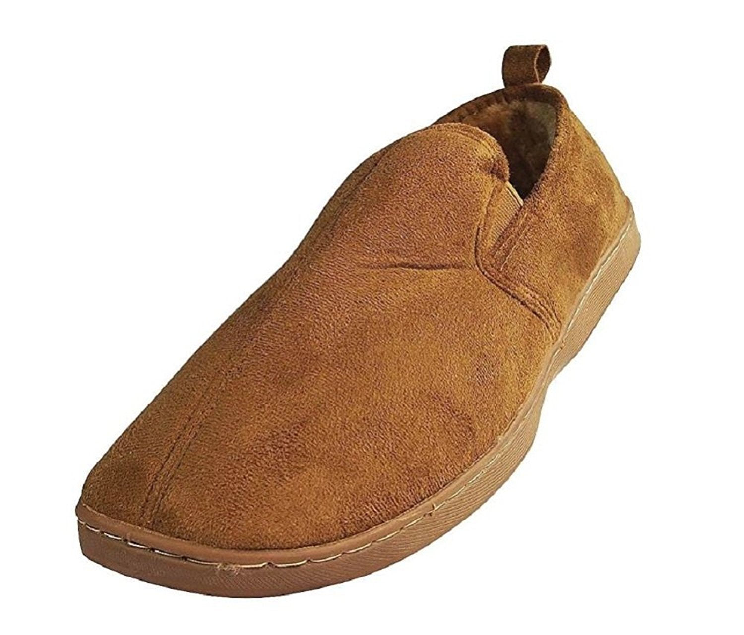 The men's slippers have twin elastic gore panels or "stretchers" on either side of the tongue which makes them easy to slip on and off. The slippers have Spring Foam cushioned bottoms and a handy pull tab on the back heel. The sole is slip resistant. The slippers can be easily surface cleaned with a damp cloth. These slippers are intended for indoor use only. These Perry Ellis Portfolio brand slippers for men with a classic design.