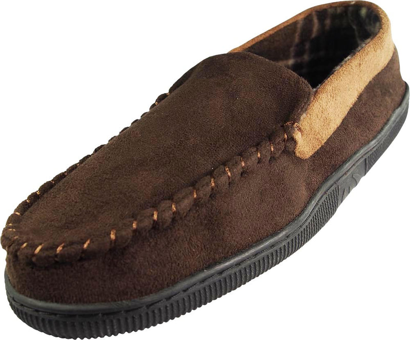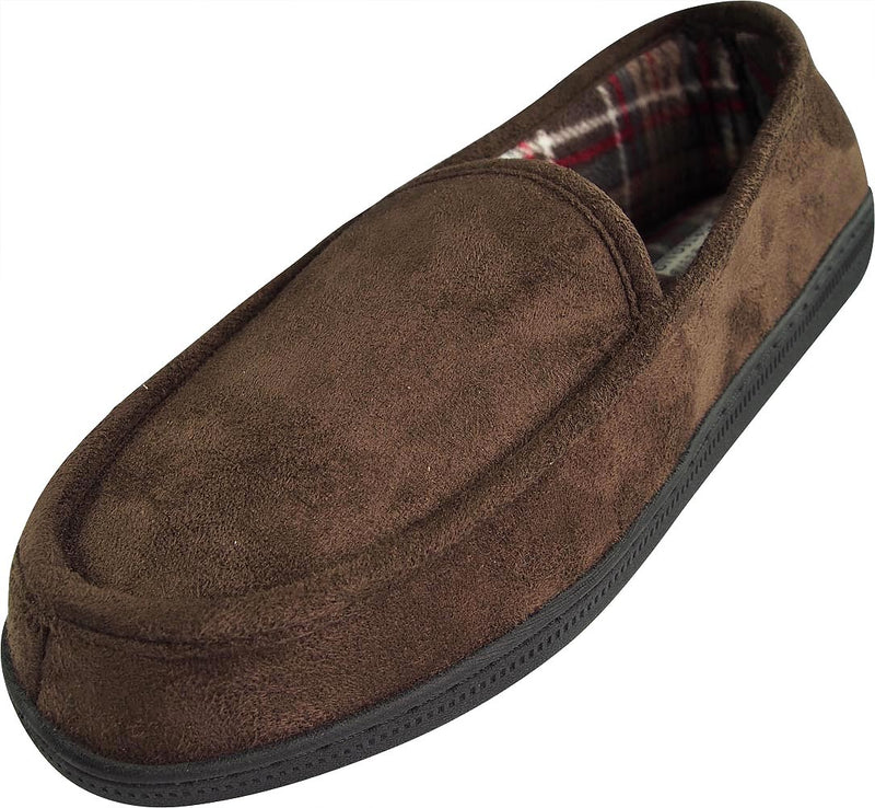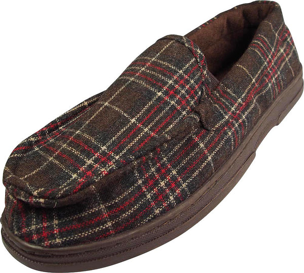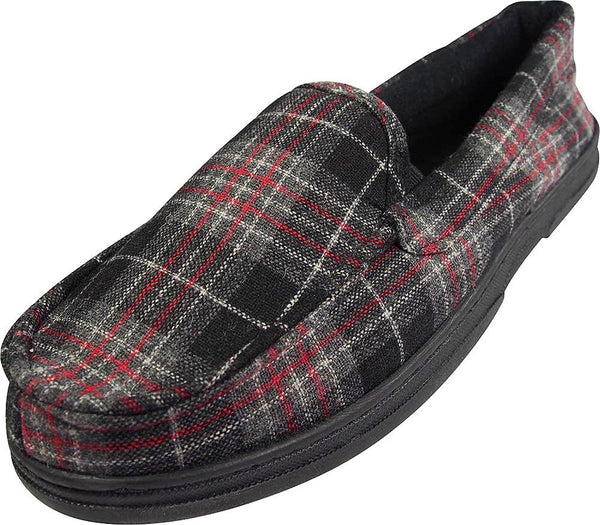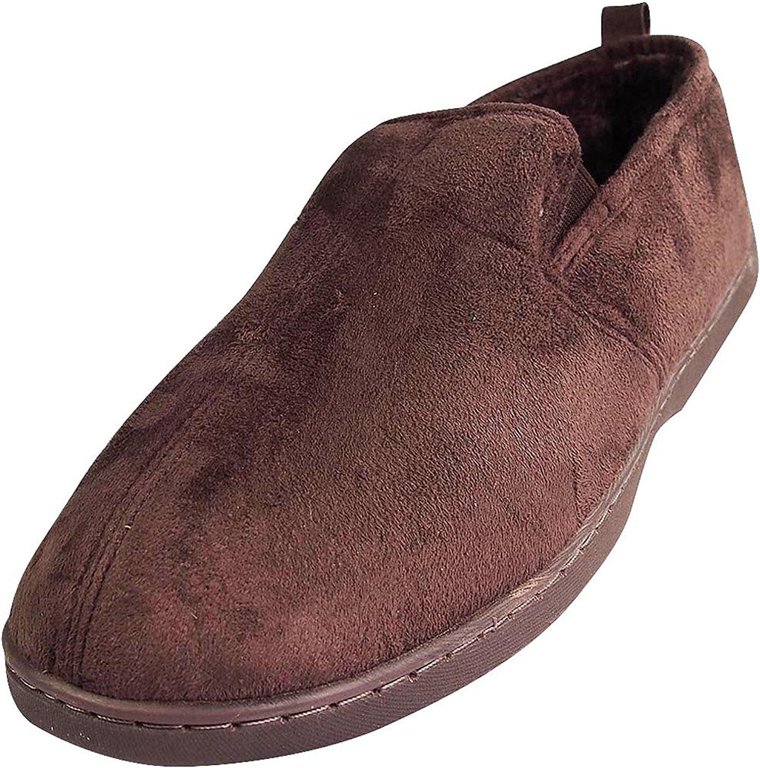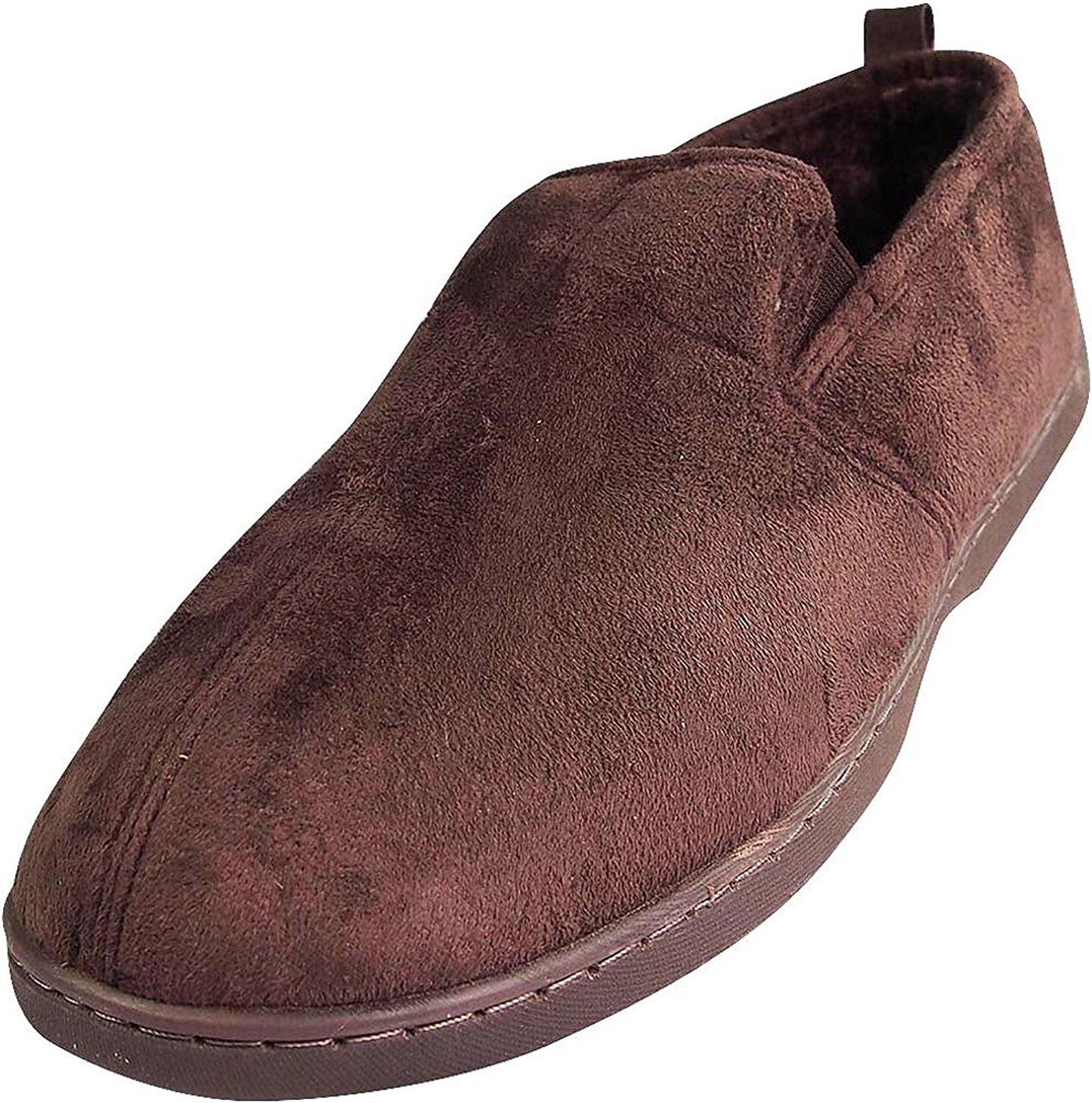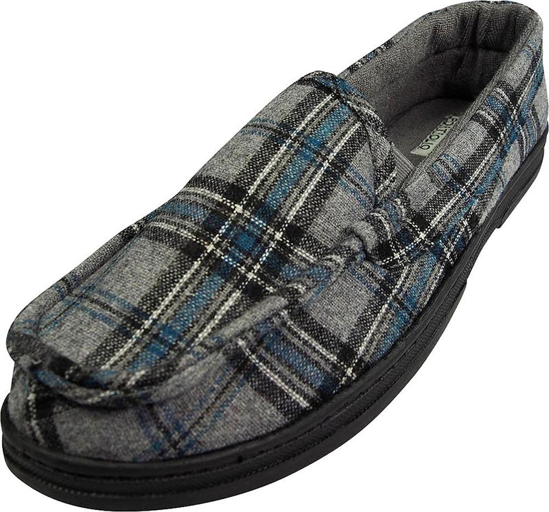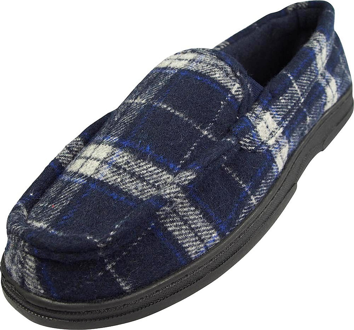 The men's slippers have twin elastic gore panels or "stretchers" on either side of the tongue which makes them easy to slip on and off. The slippers have Spring Foam cushioned bottoms and a handy pull tab on the back heel. The sole is slip resistant. The slippers can be easily surface cleaned with a damp cloth. These slippers are intended for indoor use only. These Perry Ellis Portfolio brand slippers for men with a classic design.