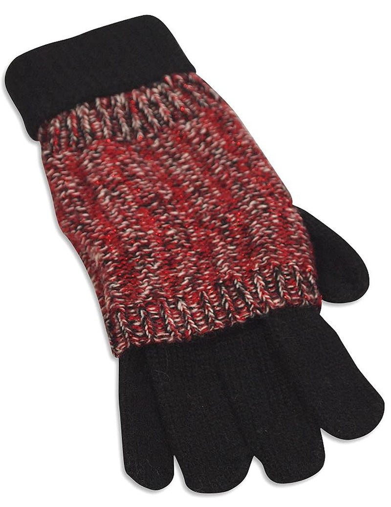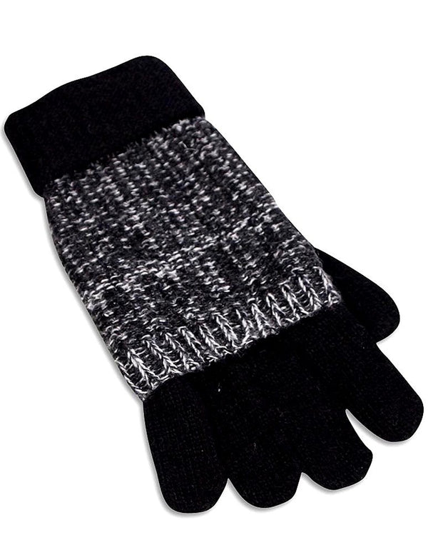 Private Label - Ladies Knit Gloves, Black, Grey, One Size Fits Most, Rollover Cuffs, Removable Knit Overlay, 35% Wool 65% Acrylic, Made In China, #28483 28-483