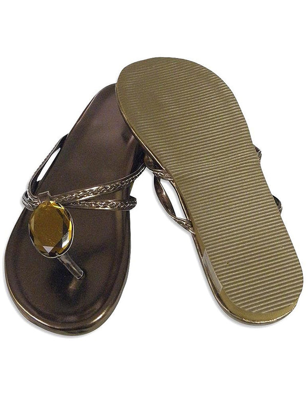 Private Label - Ladies Metallic Flip Flop, Bronze, Double Strap Thong, Large Gold Tone Jewel, Non Skid Sole, Size Small = 5/6 Medium = 7/8 Large = 9/10, All Man Made Materials, #25028