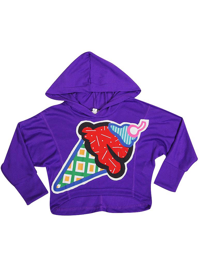 Purple Orchid - Little Girls Long Sleeve Hoodie Top, Purple, Hood, Cropped Length with Hi-Lo Hemline, Ribbed Cuff Wrists, Ice Cream Cone Patch Graphic, 60% Polyester 40% Cotton, Made in India, #35922 35-922