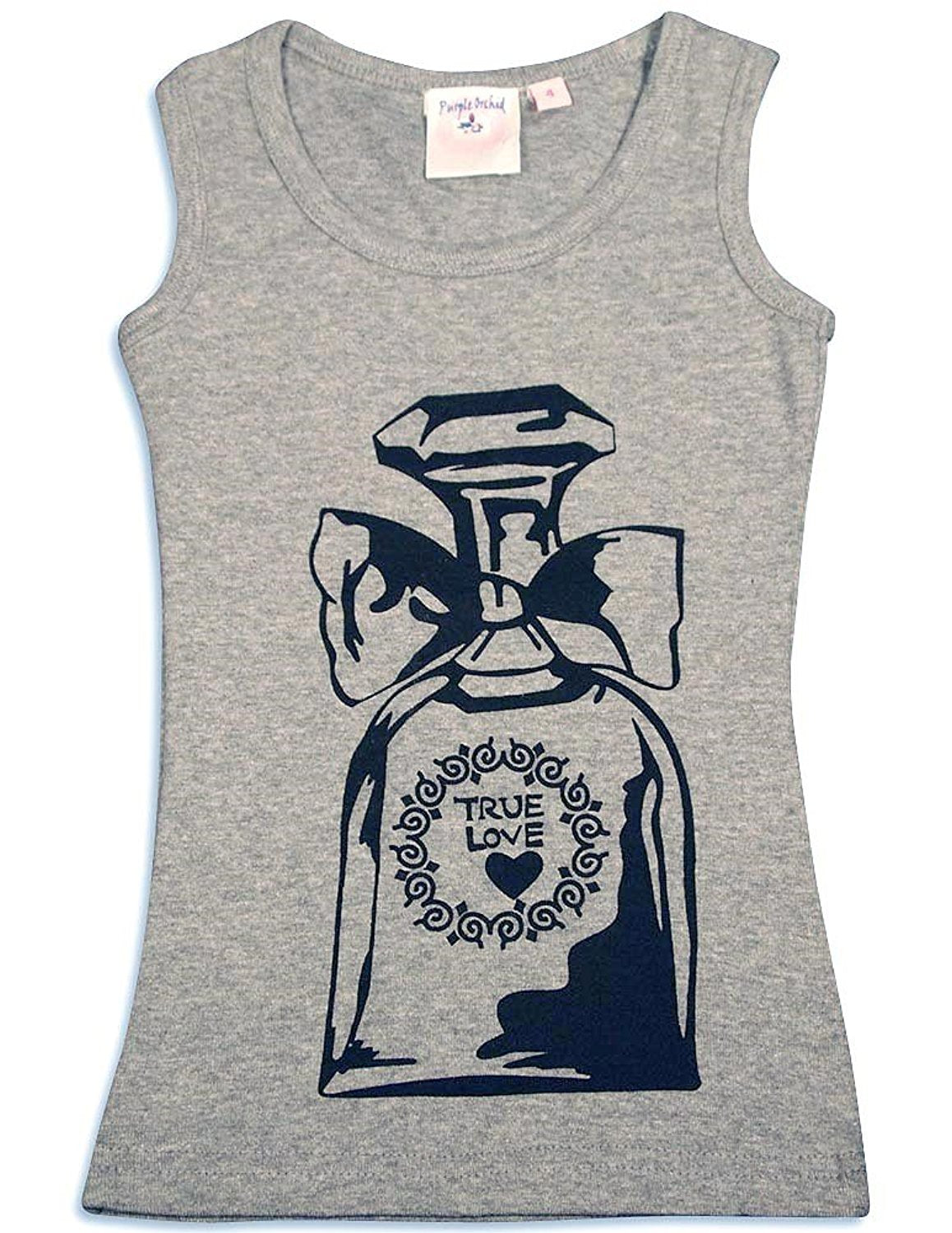 Purple Orchid - Girls Sleeveless Top, Grey, Scoop Neck, Screen Printed Heart, Allover Heart Print On Back, 100% Cotton, Made In India, #29210 29-210