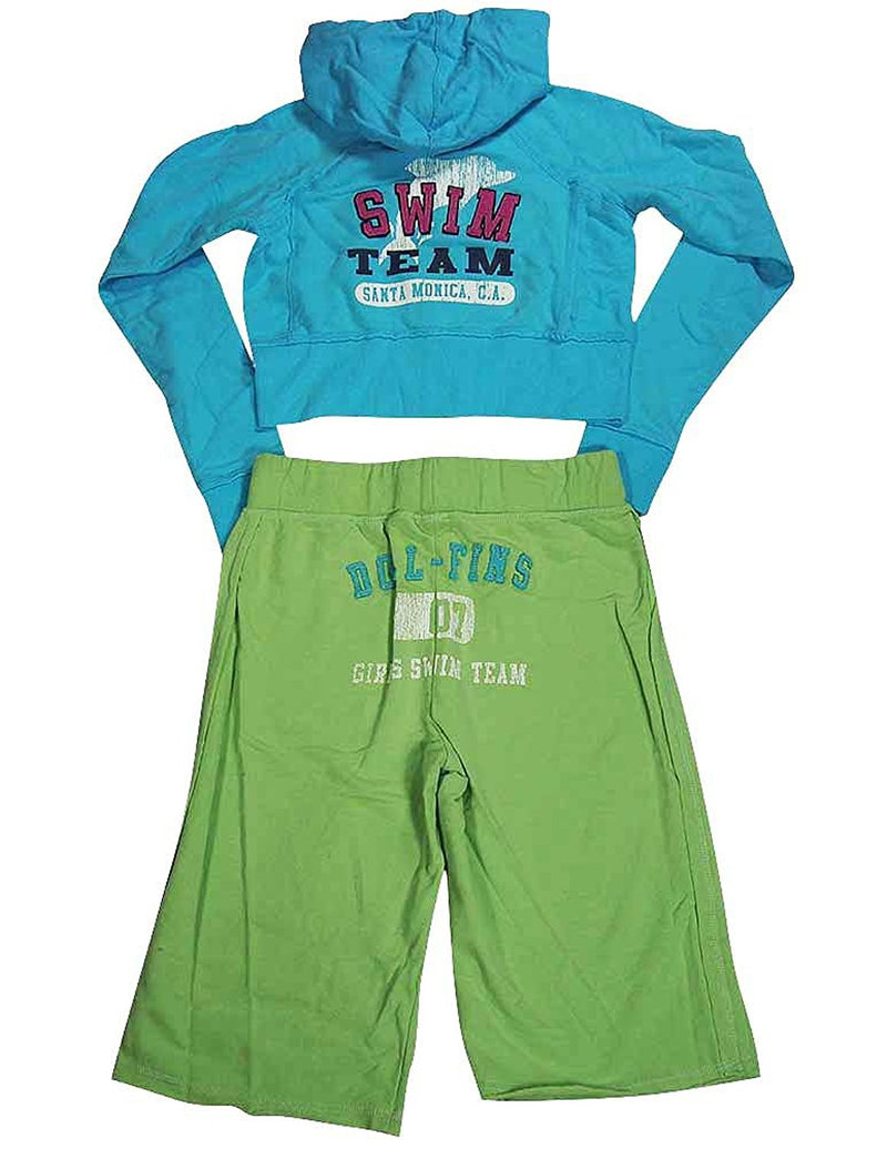 Rebelette - Girls Hoodie and Capri Sweatsuit, Turquoise, Lime, Swim Team Theme Cropped Zip Up Jacket, Ribbed Cuff Wrists and Waistband, Inside Out Trim, Wide Band Elastic Waist Drawstring Capri, 95% Cotton 5% Spandex, Made In China, #11199