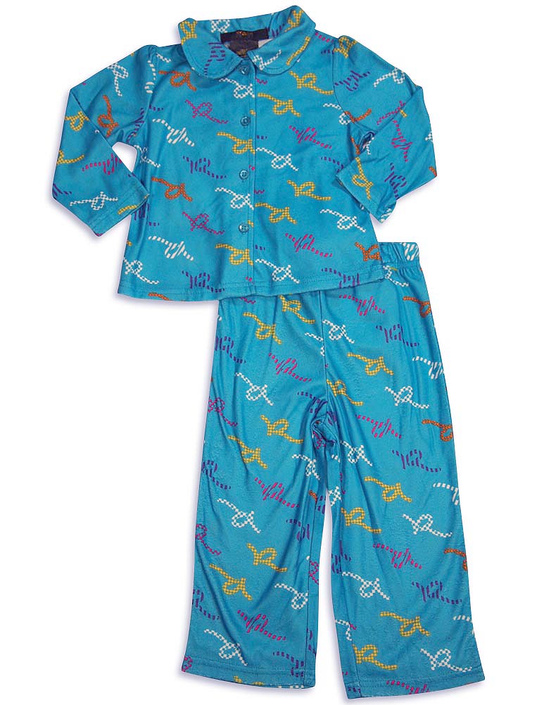 Rocawear - Toddler Girls Long Sleeve Pajamas, Turquoise, Coat Style, Rounded Collar, Logo'd Graphic, Full Elastic Waistband, Brushed Poly Fabric, Flame Resistant, 100% Polyester, Made In Cambodia, #28988 28-988