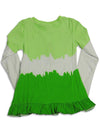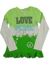 S.W.A.K. - Girls Long Sleeve Top, Green, White, Layered Look Sleeves, Ribbed Crewneck, LOVE PEACE, Nailhead Embellishment, Ruffle Hem, 60% Cotton 35% Polyester 5% Spandex, #24837
