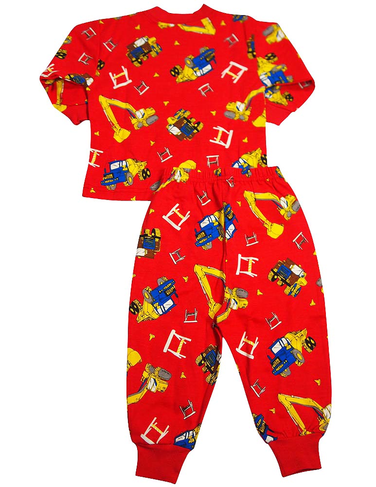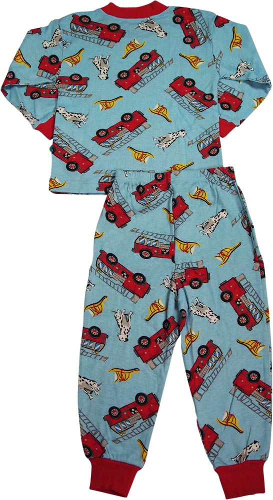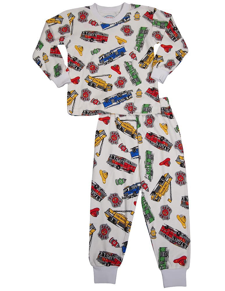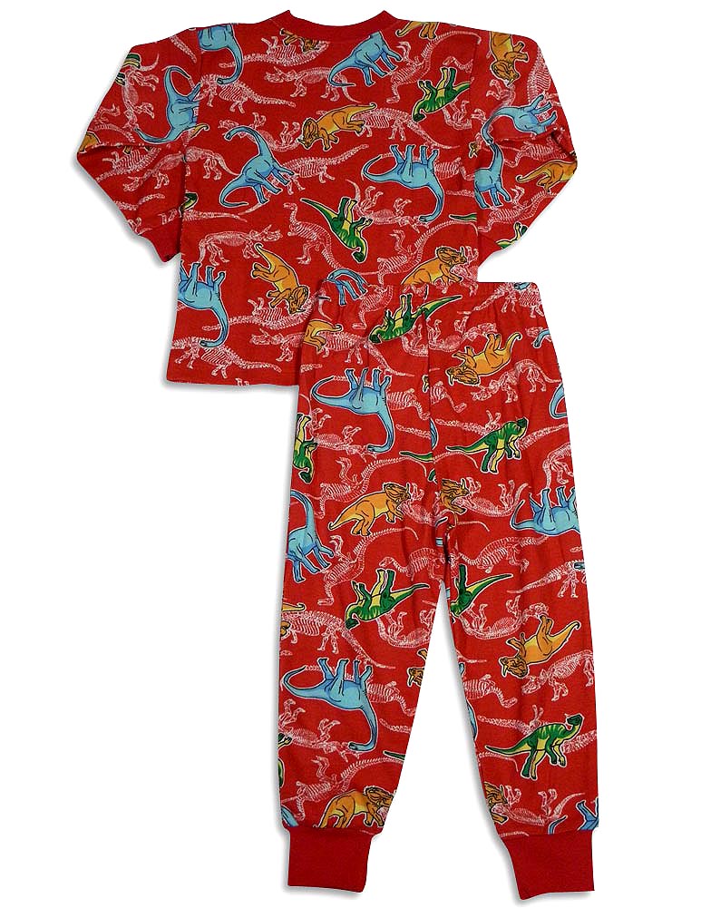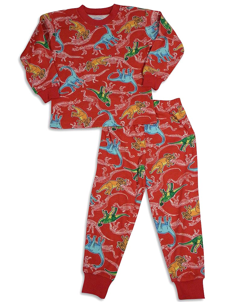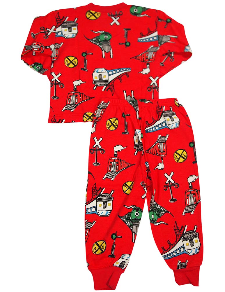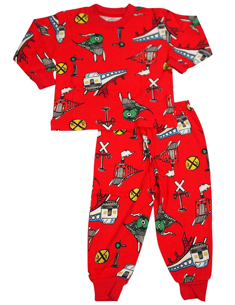 Sara's Prints - Boys Long Sleeve Pajamas, Red, Ribbed Neck and Cuff Wrists, Matching Pant with Full Elastic Waistband, Allover Prints, Inherently Flame Resistant, 60% Cotton 40% Modacrylic, Made in China, #32831 32-831