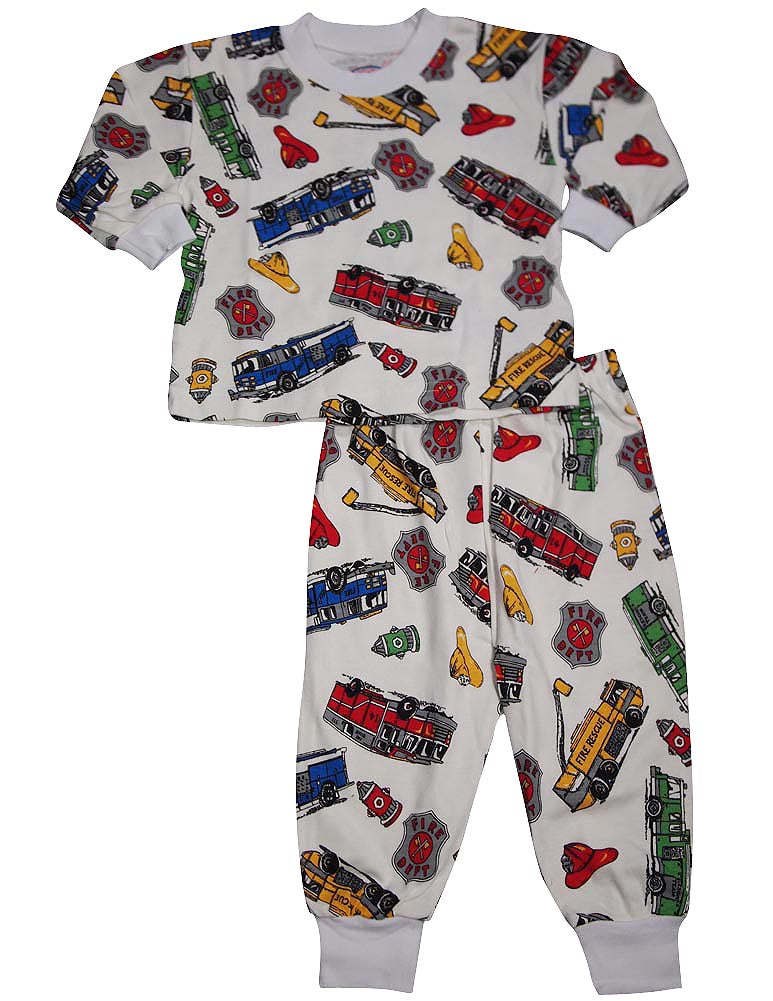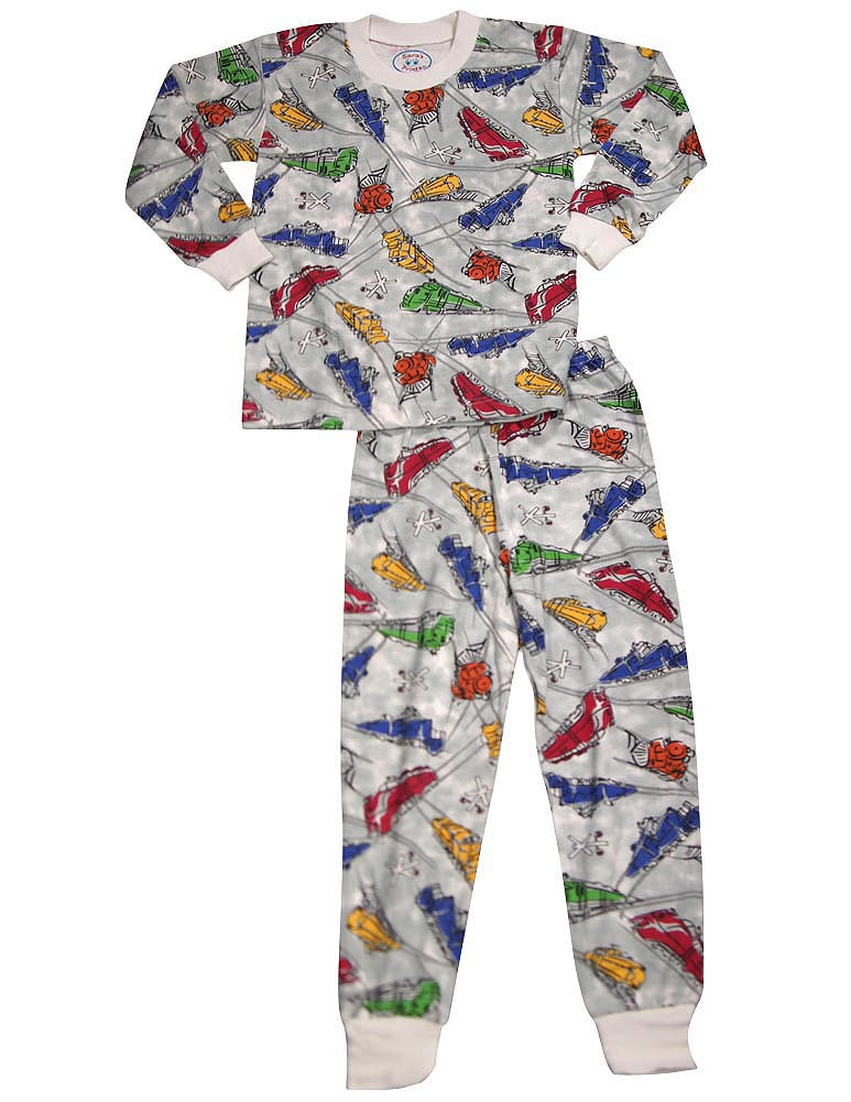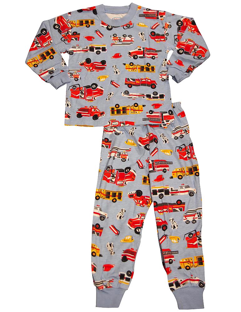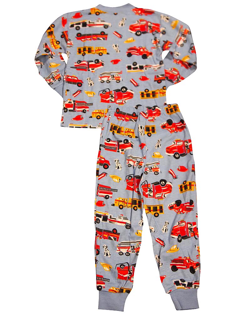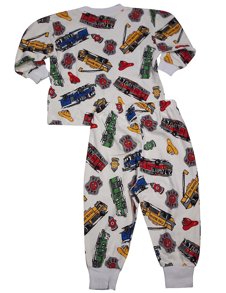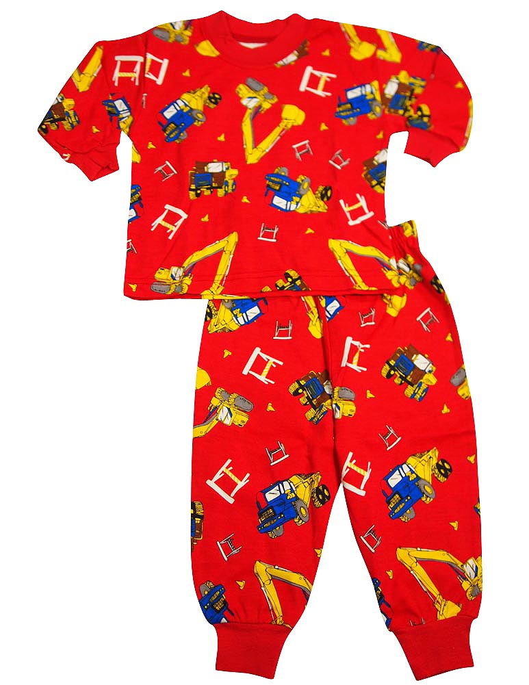 Sara's Prints - Boys Long Sleeve Pajamas, Red, Ribbed Neck and Cuff Wrists, Matching Pant with Full Elastic Waistband, Allover Prints, Inherently Flame Resistant, 60% Cotton 40% Modacrylic, Made in China, #32831 32-831