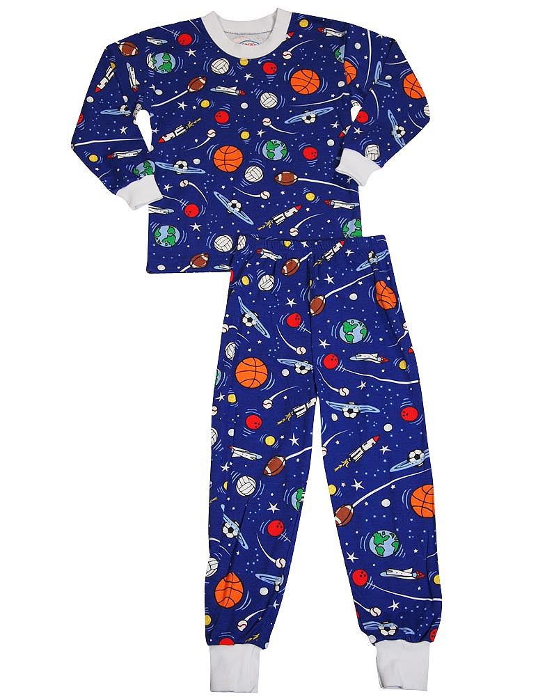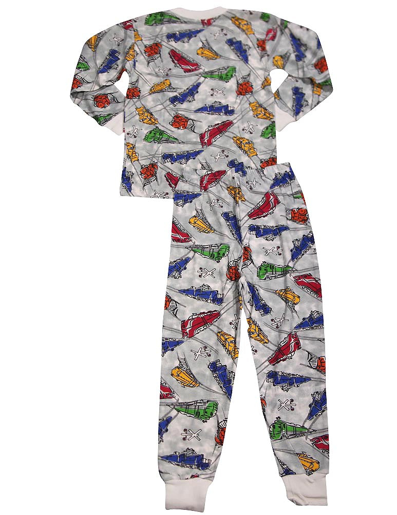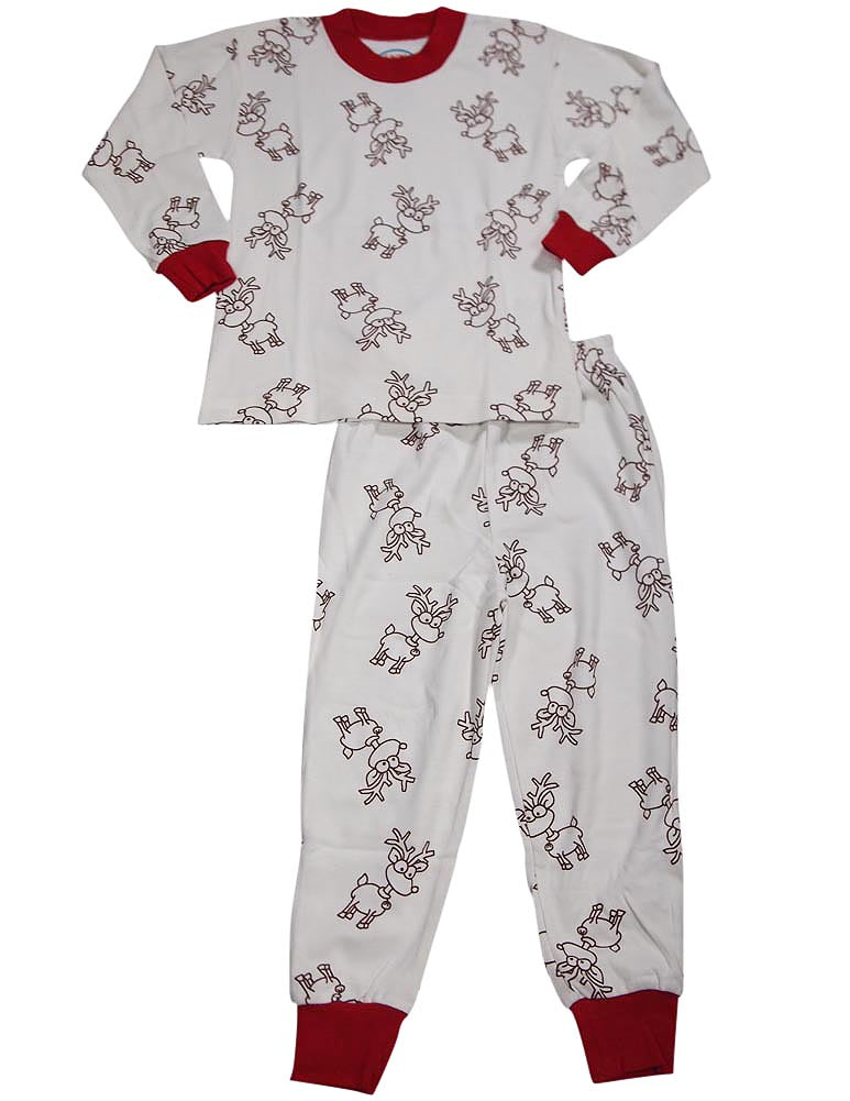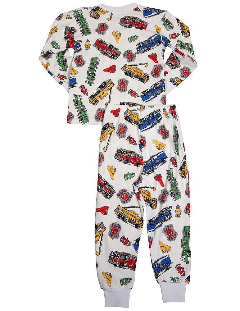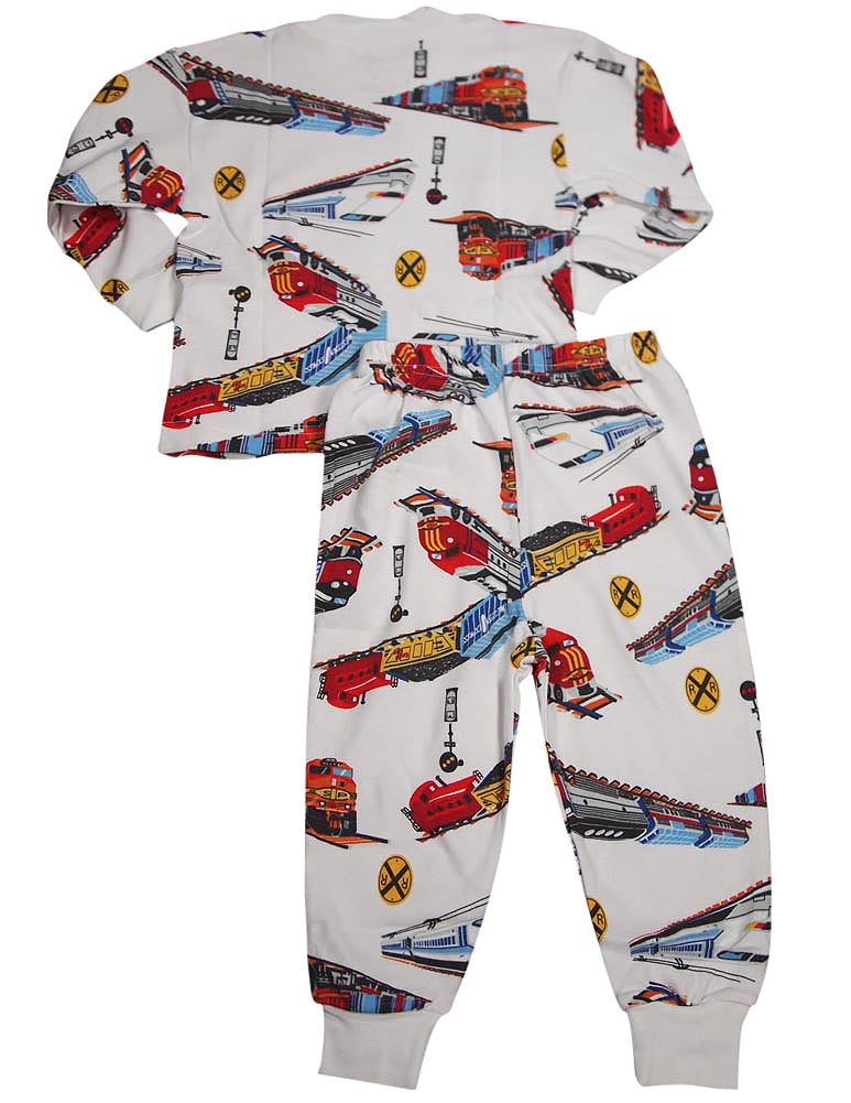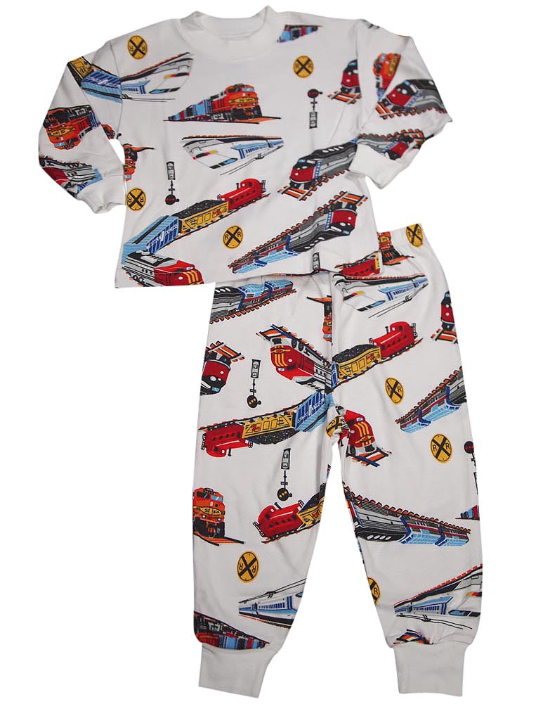 Sara's Prints - Boys Long Sleeve Pajamas, Red, Ribbed Neck and Cuff Wrists, Matching Pant with Full Elastic Waistband, Allover Prints, Inherently Flame Resistant, 60% Cotton 40% Modacrylic, Made in China, #32831 32-831
