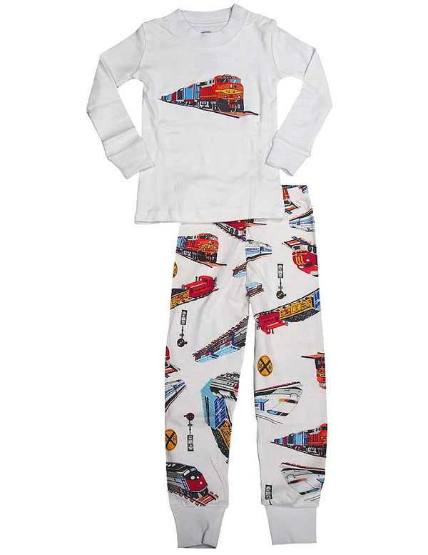 Sara's Prints - Little Boys Long Sleeve Pajamas, Ribbed Crewneck, Ribbed Cuff Wrists, Full Elastic Waistband Pant, Ribbed Cuff Ankles, Wear Snug Fitting, 100% Cotton, Made in China, #37940 37-940