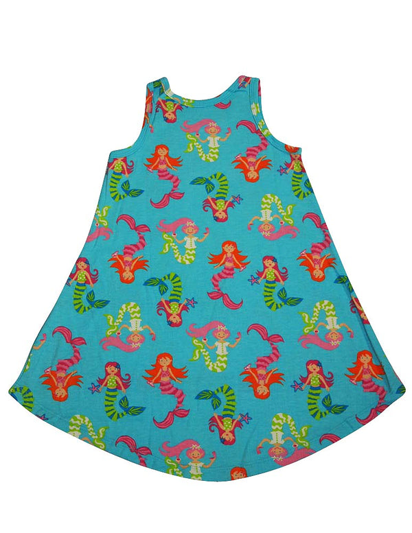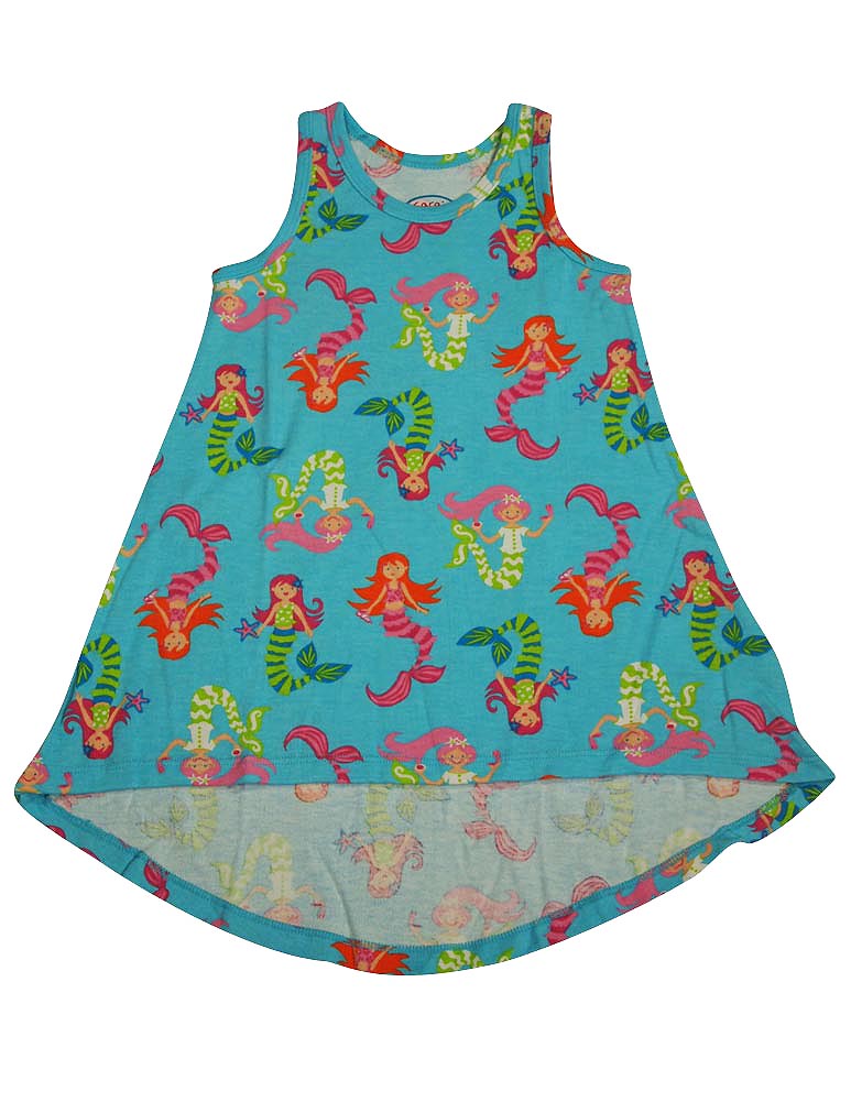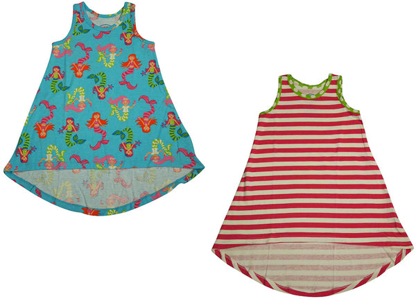 Sara's Prints - Girls Sleeveless Hi-Lo Striped Nightgown, Pink, Lime, Scoop Neck, Mermaid Print, Hi-Lo Style Hemline, Inherently Flame Resistant, 60% Cotton 40% Modacrylic, Made in China, #35356 35-356