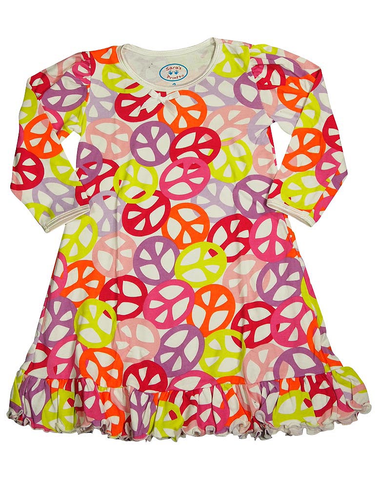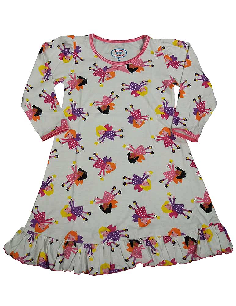 Sara's Prints Toddler Girls Long Sleeve Gown Multi Prints Ruffle Flame Resistant