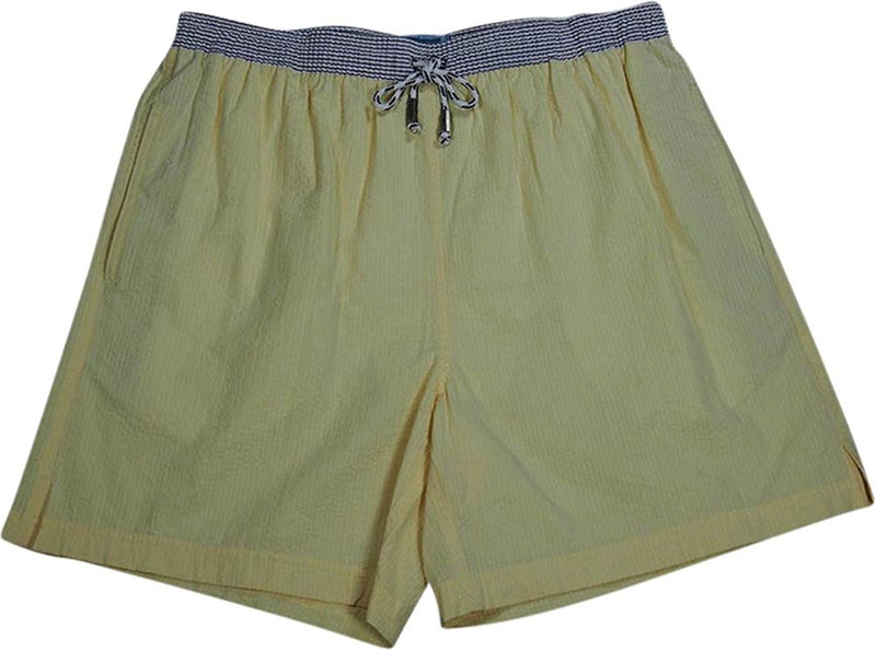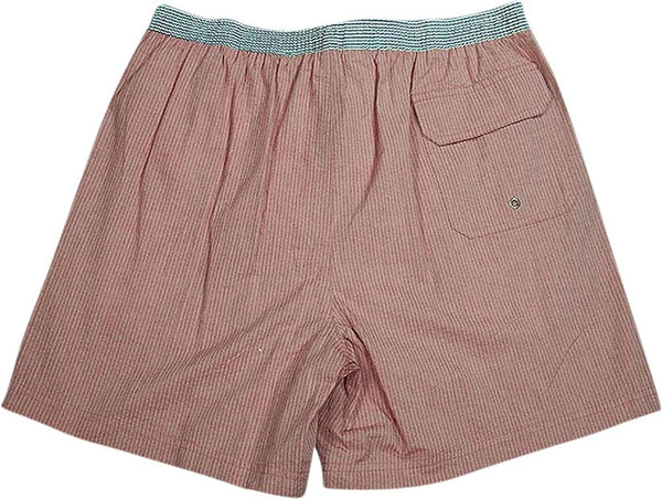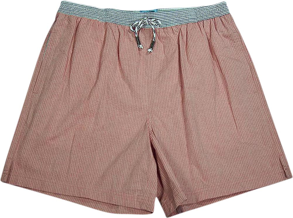 Sea Scapes by Majestic International - Mens Swim Suit, Salmon, Seersucker, Contrasting Full Elastic Waistband with Rope Drawstring Tie, Mesh Liner, Side Seam Pockets, Back Velcro Flap Pocket, Hidden Key Pocket, Side Slits, 100% Polyamide Lining 100% Polyester, Made in China, #36951 36-951