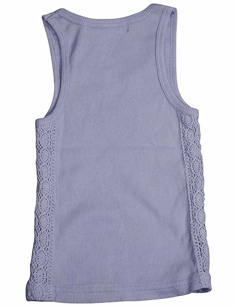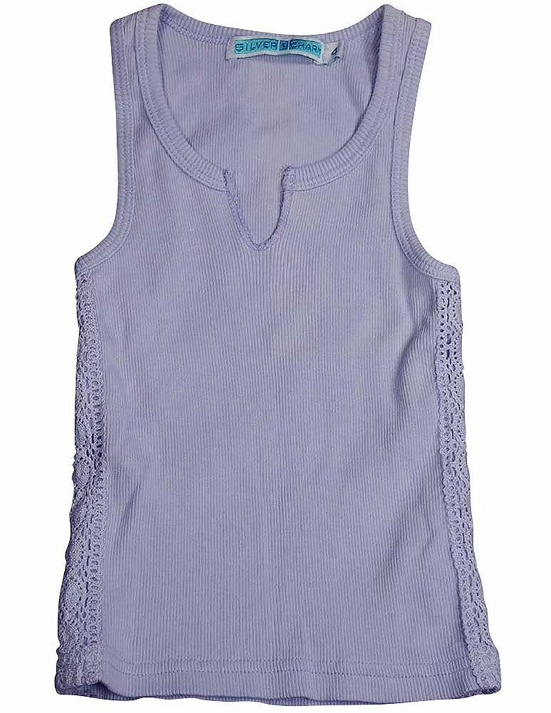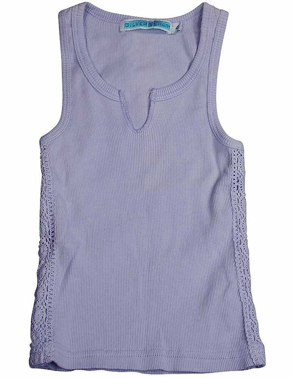 Silver Charm - Girls Ribbed Tank, Lavender, Crochet Panel Down Both Sides, Cut V-Neck, 100% Cotton, Made In USA, #12718