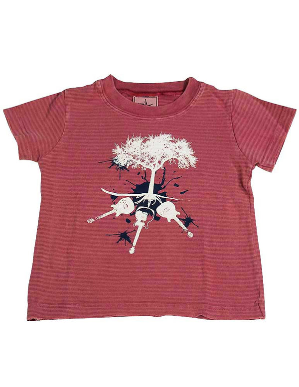 Silver Pony - Infant Boys Short Sleeve Striped Tee, Rose, Guitars, Ribbed Neck, Cut Off Sleeve Band And Hem, 50% Cotton 50% Polyester, #12132