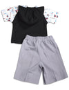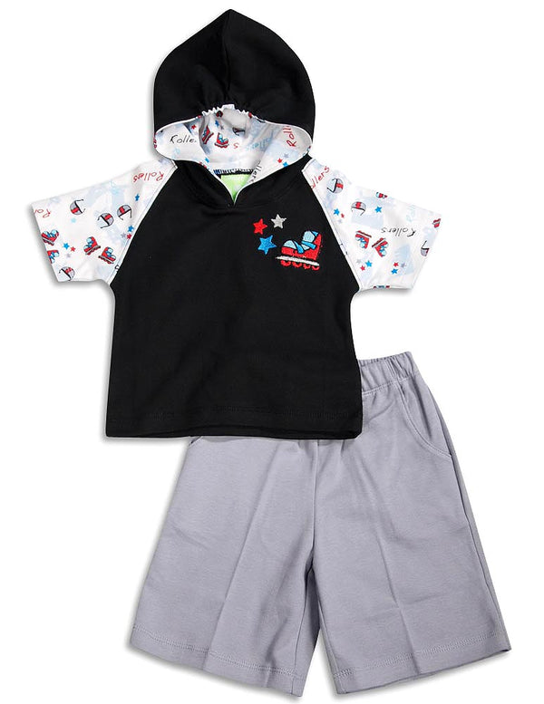 Snopea - Newborn and Infant Boys Roller Champ Hoodie Pant Set, Black, Grey, Short Sleeve Hoodie Tee With Roller Skates Screen Print Sleeves, Elastic At Hood, Embroidered Skate and Stars, Full Elastic Waistband Pant, Front Pockets, Wide Legs, 100% Cotton, Made In Thailand, #29674 29-674