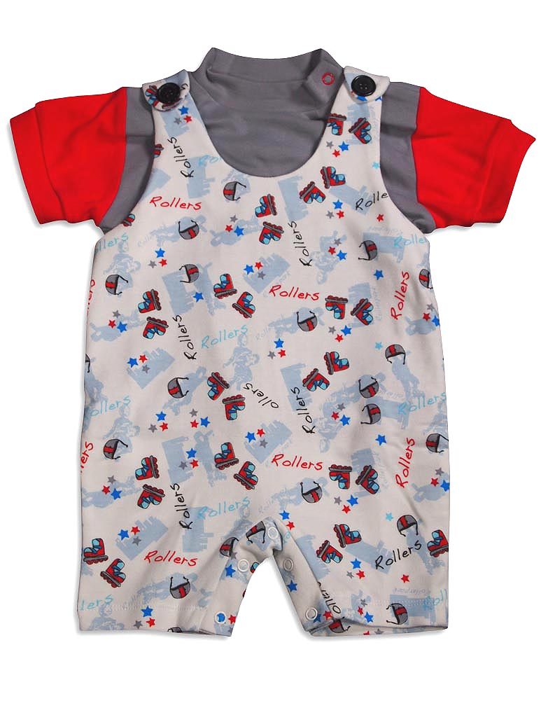 Snopea - Newborn and Infant Boys Roller Champ Shortall, White, Grey, Red, Short Sleeve Colorblocked Tee with Shoulder Snaps, Roller Skates Print Shortall, Oversized Buttoned Shoulders, Crotch Snaps, 100% Cotton, Made In Thailand, #29673 29-673