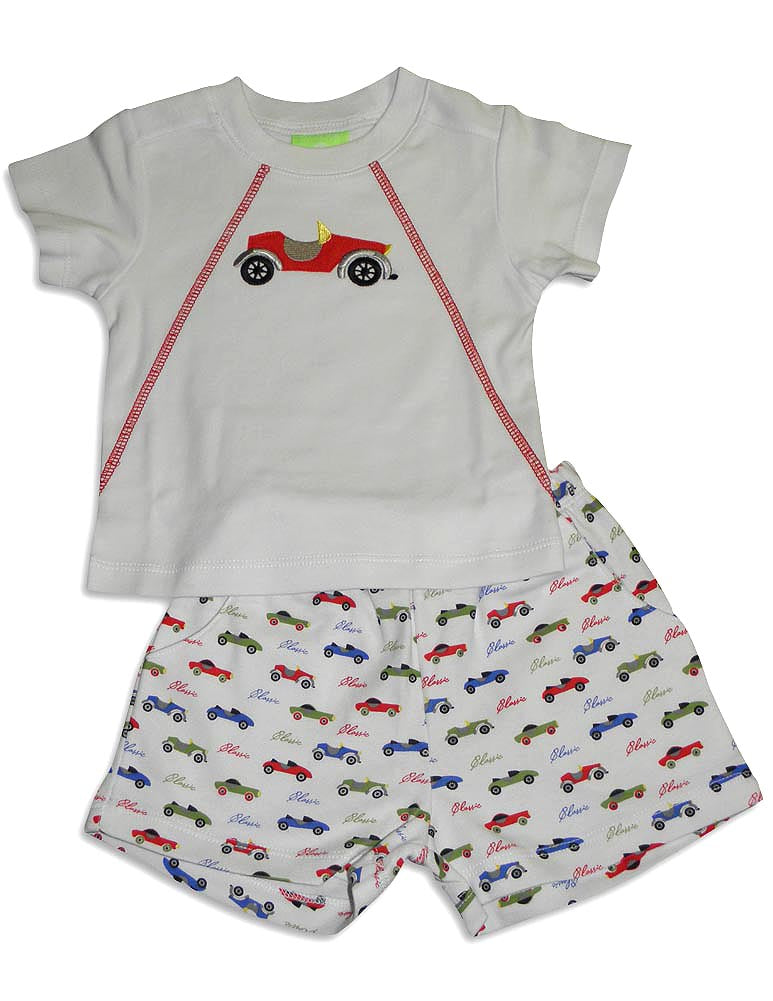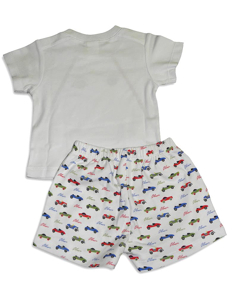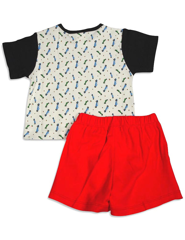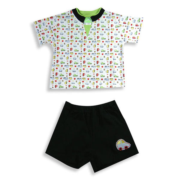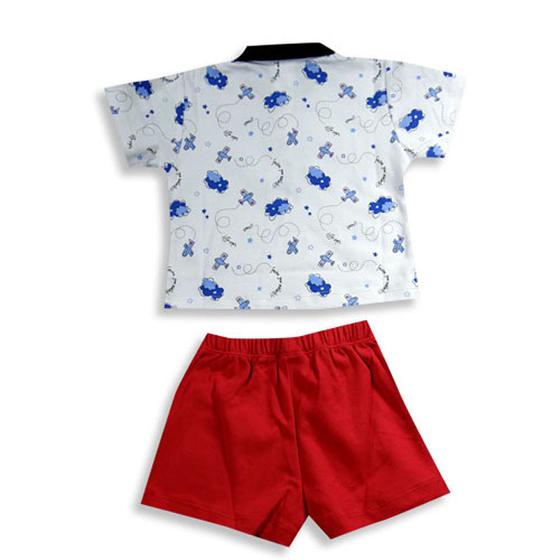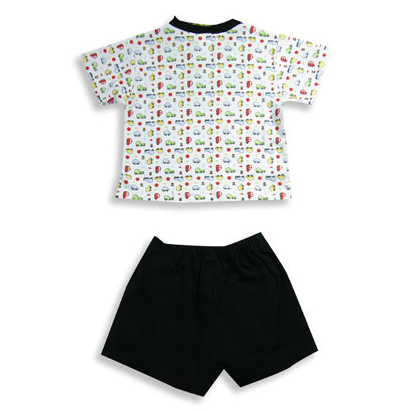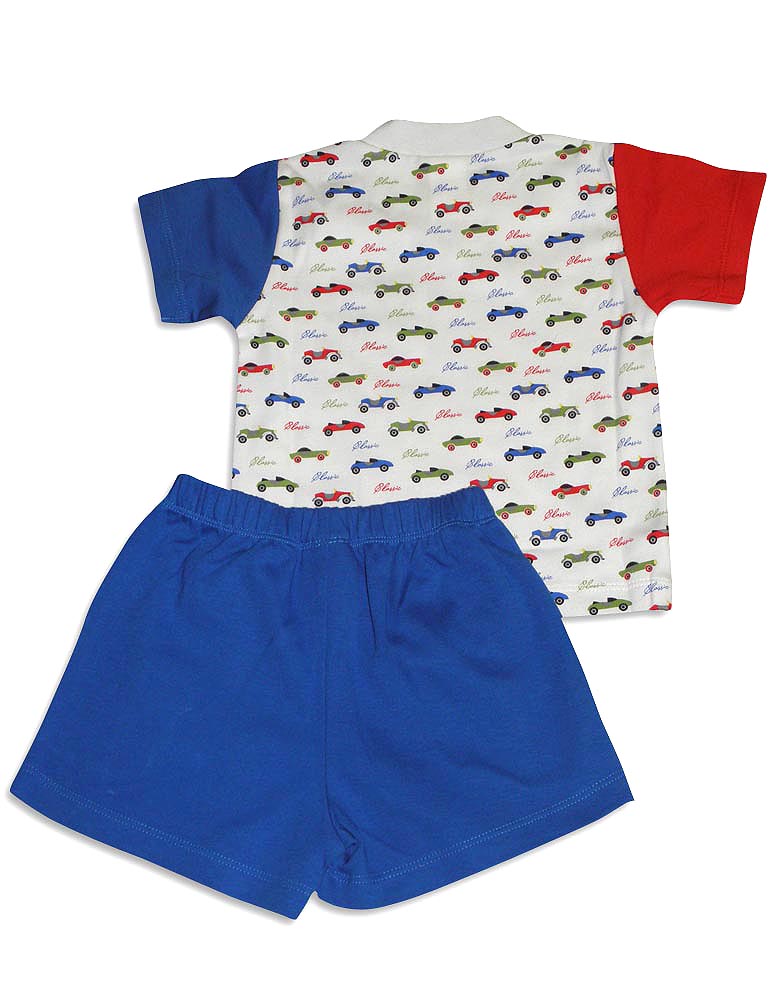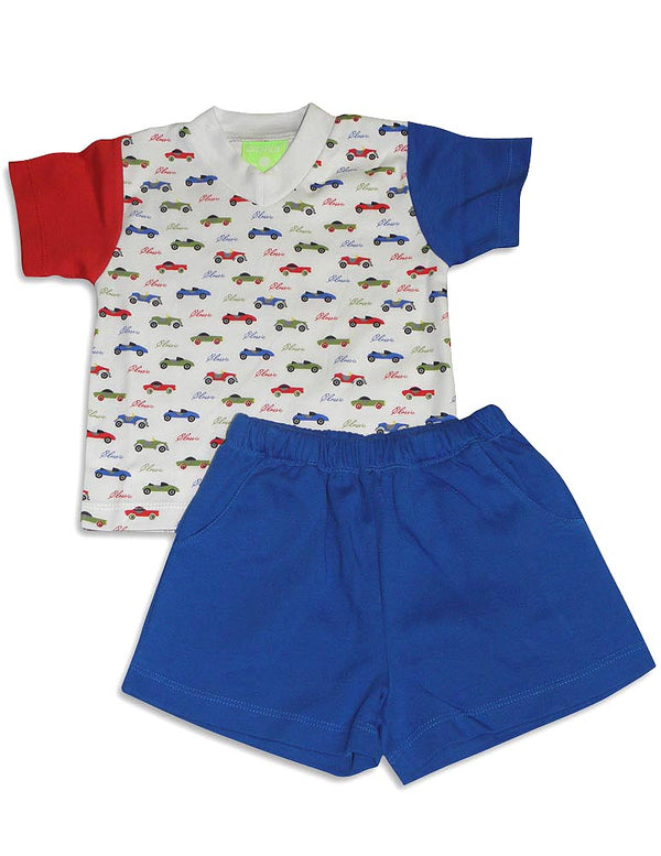 - FUN PRINTS IN A VARIETY OF COLORS AND PRINTS - 2 piece short sets come in white, blue, red, black and green combinations with prints of classic cars, zoom zoom cars, rollerskating champs, puffs in the sky airplanes, baseball, spaceships and safari animals.