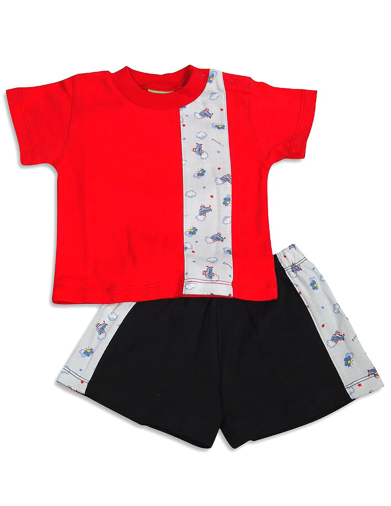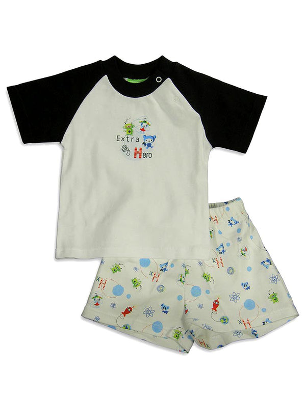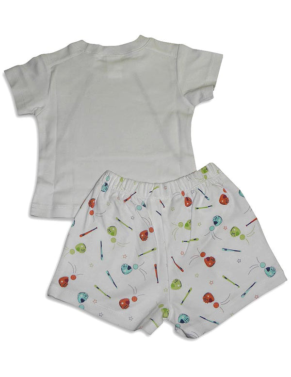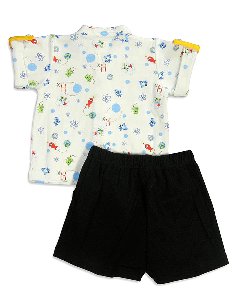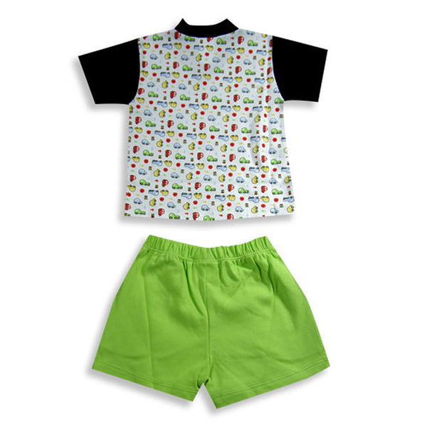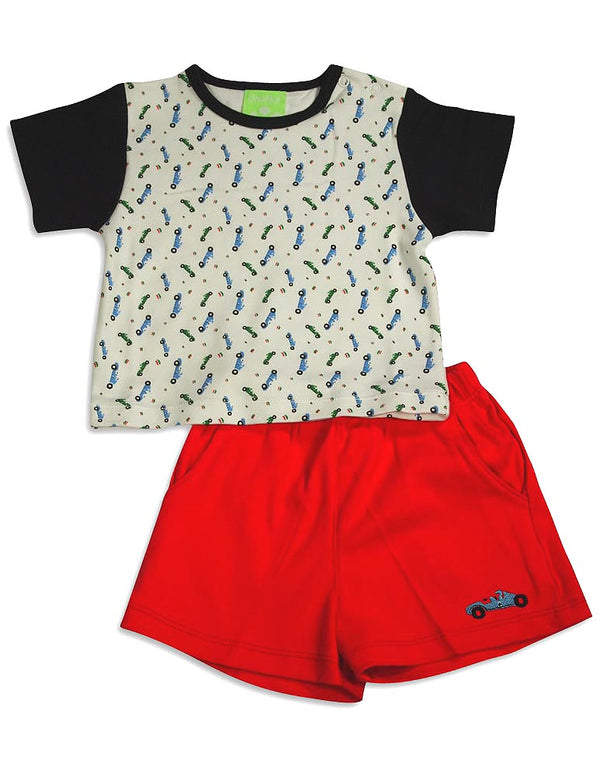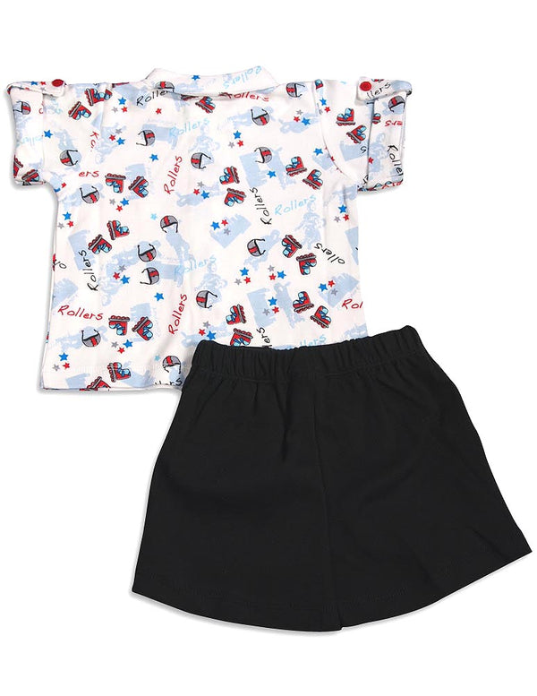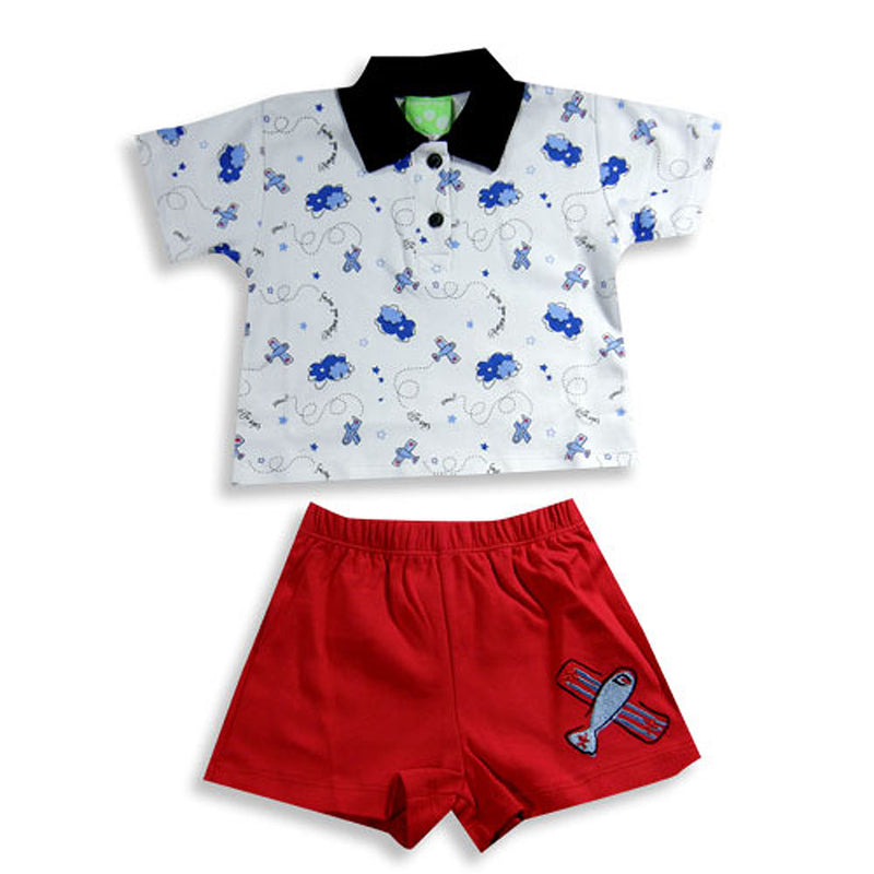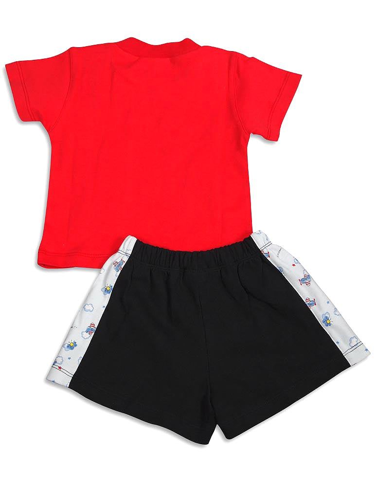 - FUN PRINTS IN A VARIETY OF COLORS AND PRINTS - 2 piece short sets come in white, blue, red, black and green combinations with prints of classic cars, zoom zoom cars, rollerskating champs, puffs in the sky airplanes, baseball, spaceships and safari animals.