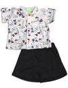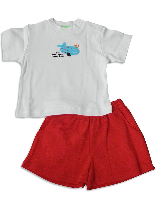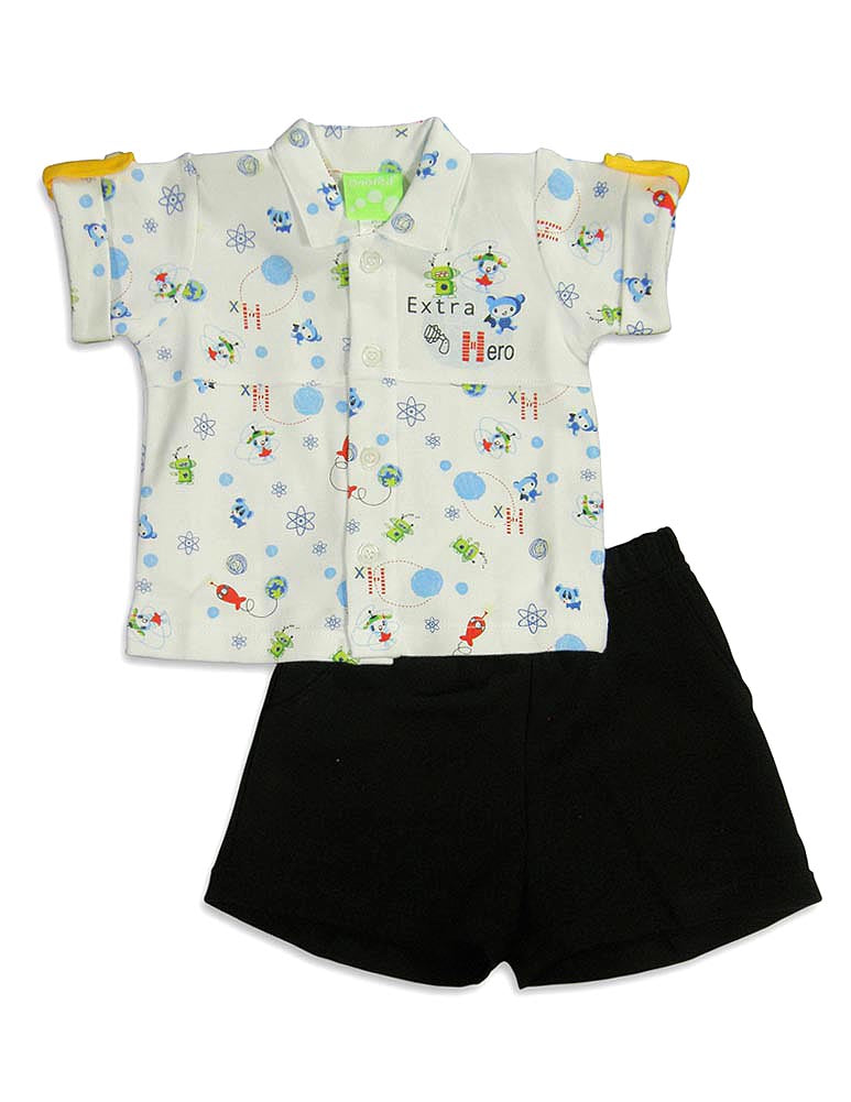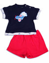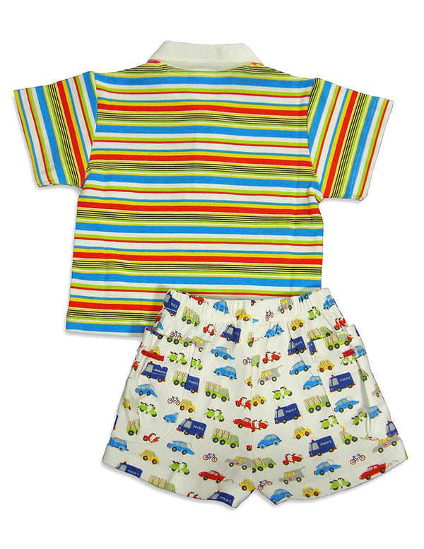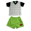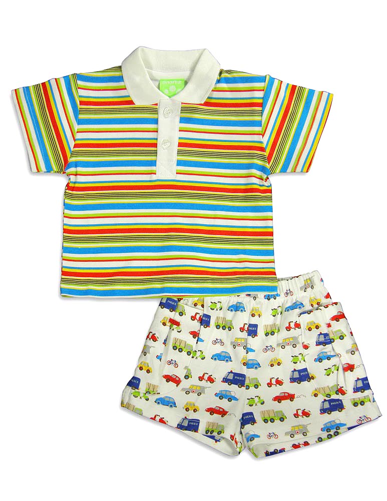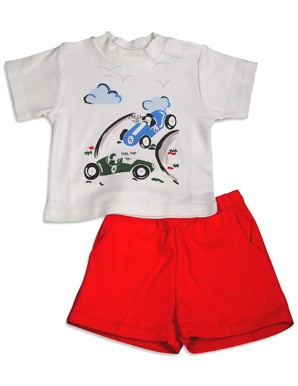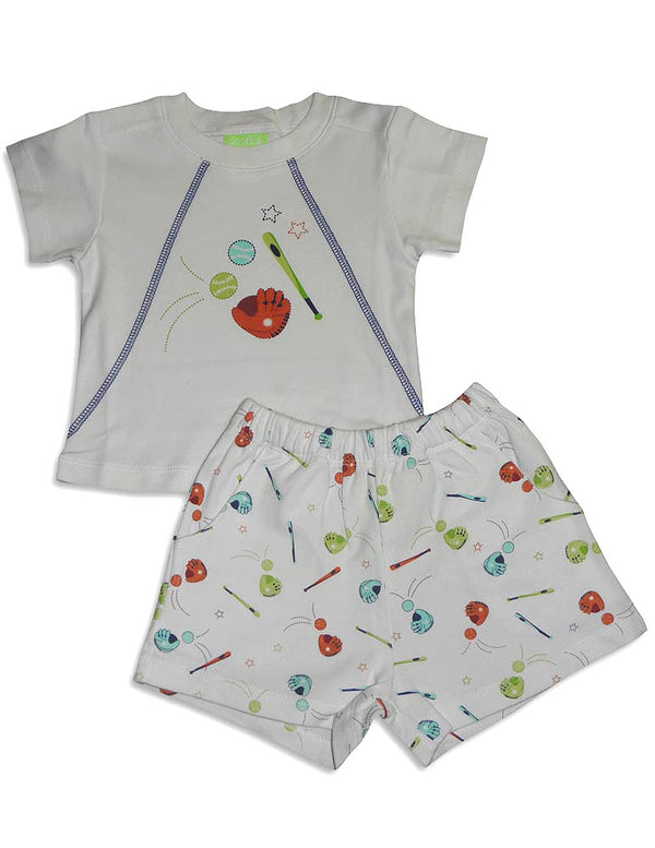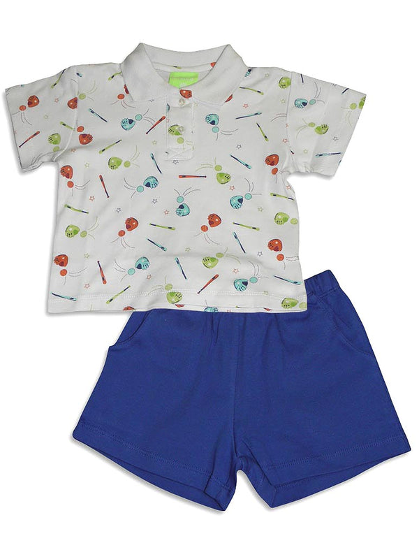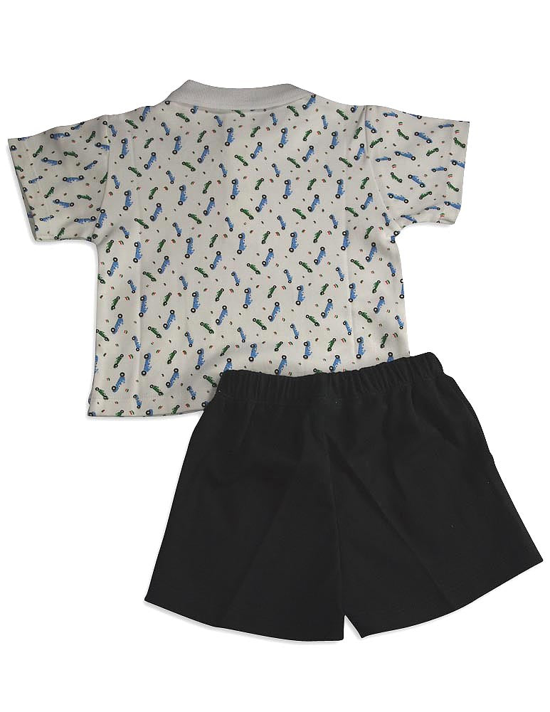 - FUN PRINTS IN A VARIETY OF COLORS AND PRINTS - 2 piece short sets come in white, blue, red, black and green combinations with prints of classic cars, zoom zoom cars, rollerskating champs, puffs in the sky airplanes, baseball, spaceships and safari animals.