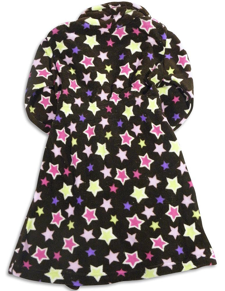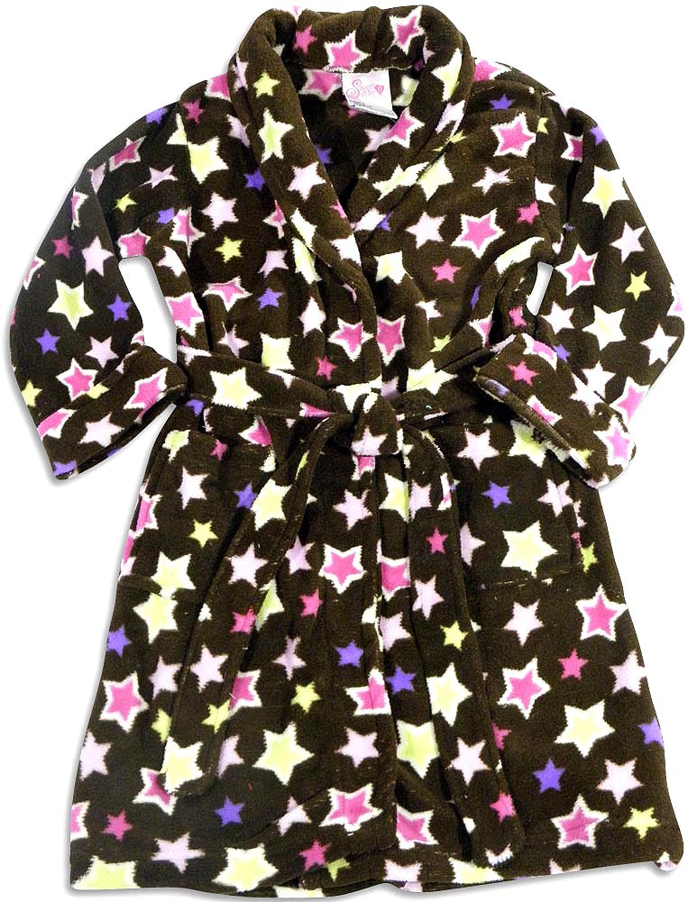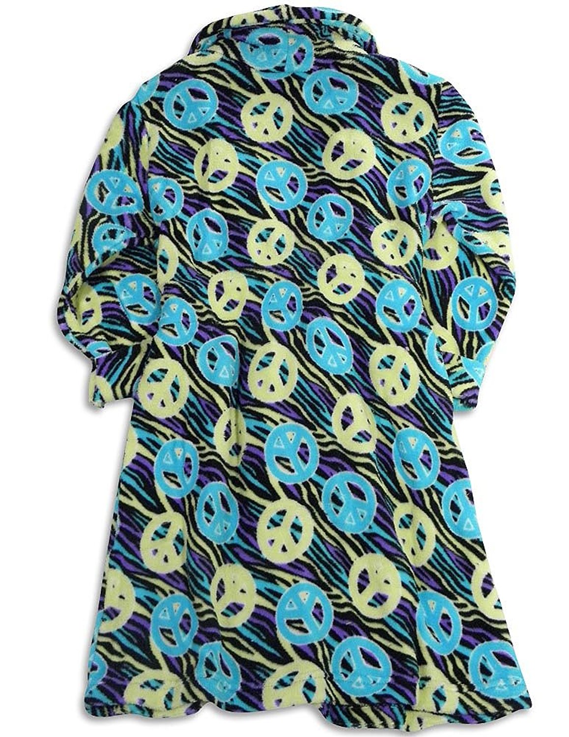 Sweet n Sassy - Girls Peace Signs Robe, Turquoise, Yellow, Purple, Soft Plush Cozy, Shawl Collar, Turned Up Cuff Wrists, Attached Tie Belt With Hidden Elastic In Back, Inside Hidden Tie, Front Pockets, Flame Resistant, 100% Polyester, Made In China, #27495 27-495