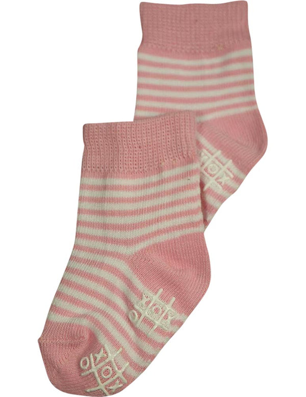Tic Tac Toe - Girls Striped Ankle Sock, Pink, White, Non Slip Sole, Size XXS = 3 - 4 1/2 XS = 4 - 5 1/2, 75% Cotton 20% Nylon 5% Spandex, Made in Korea, #31858 31-858