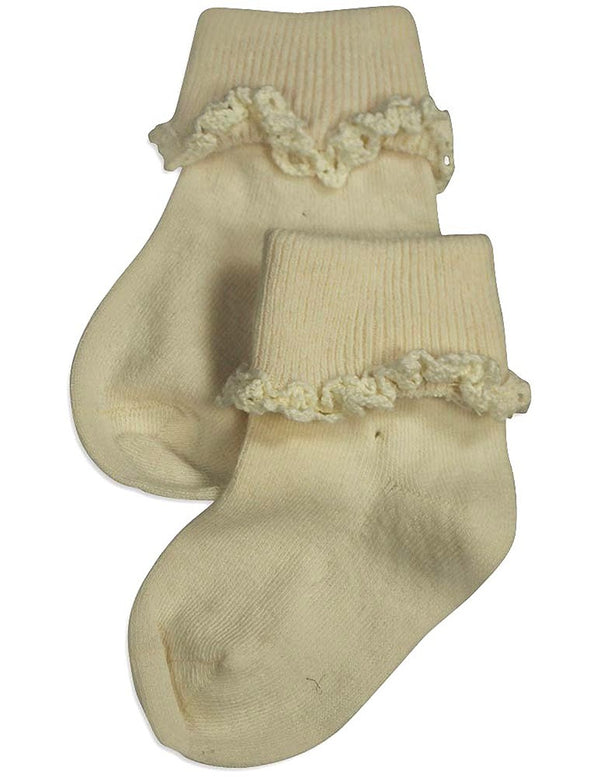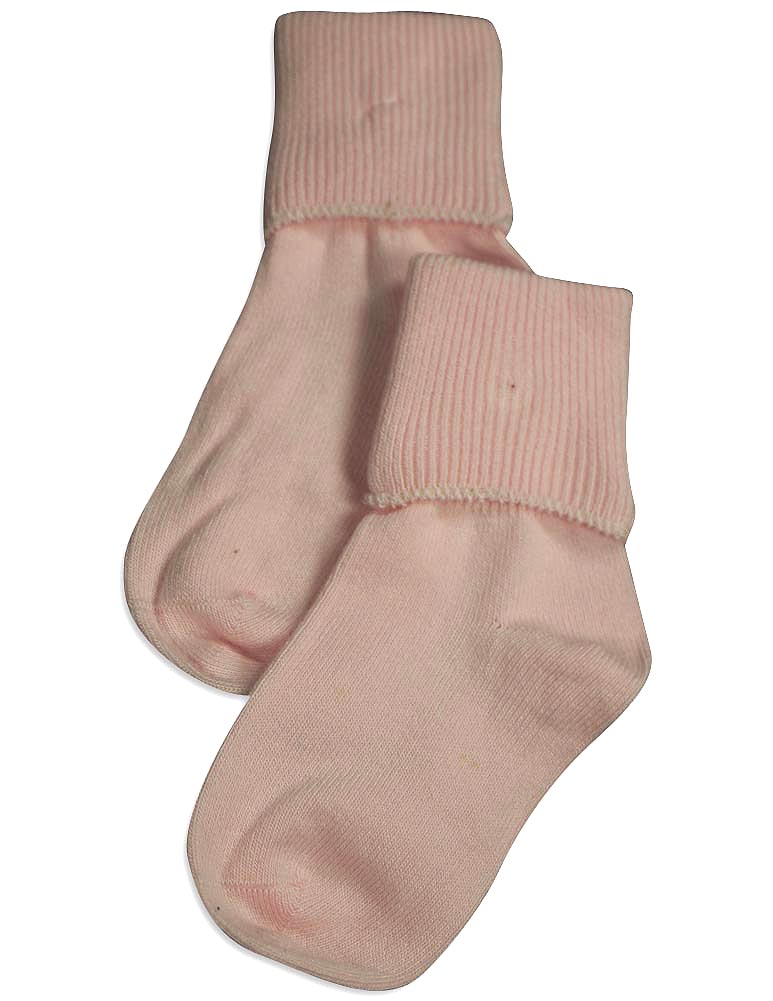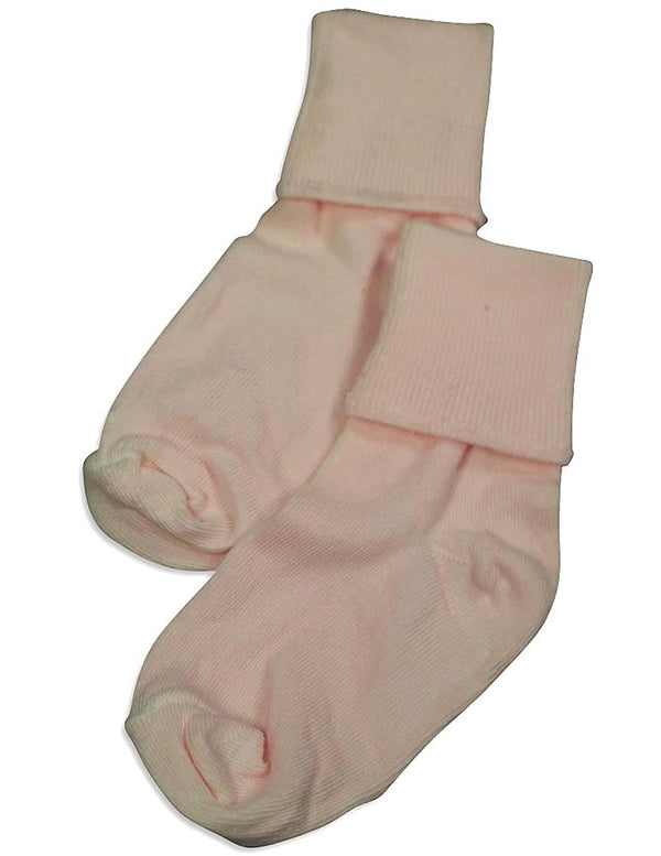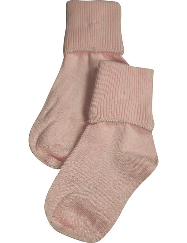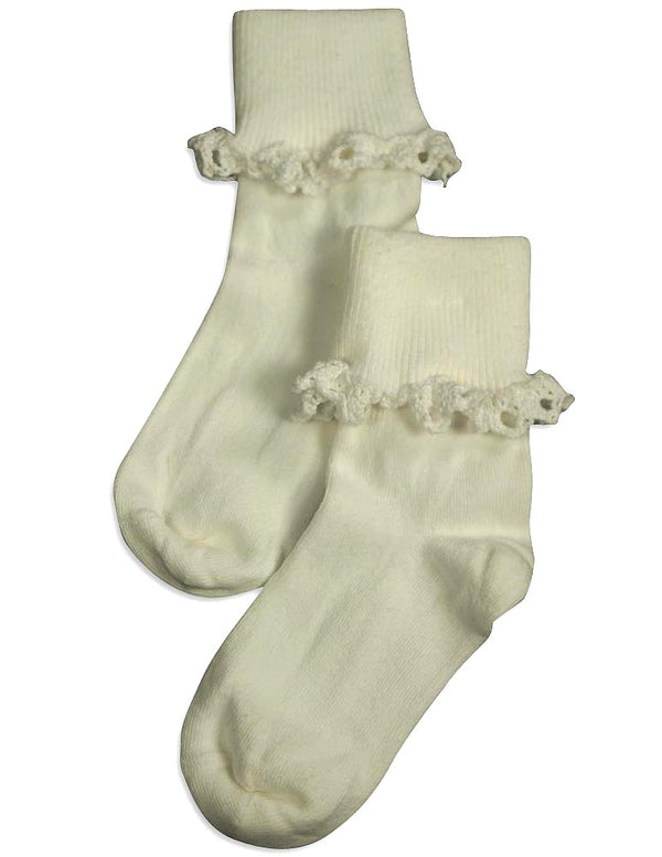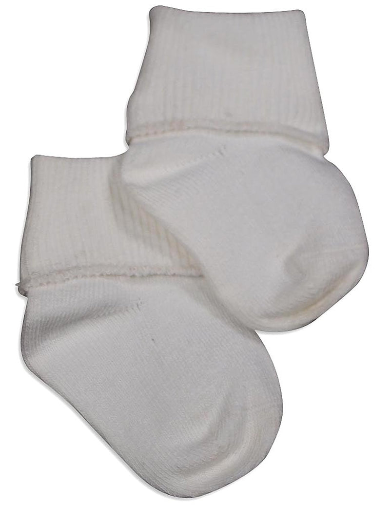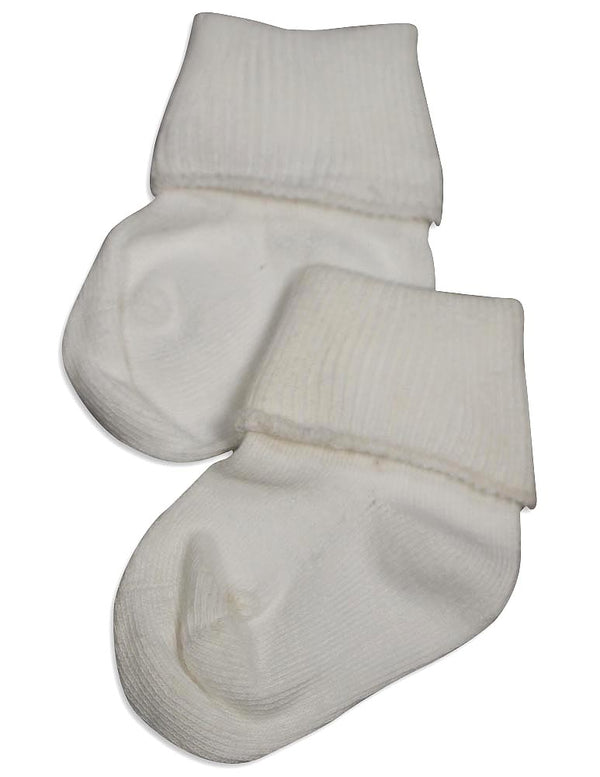 Tic Tac Toe - Girls Turn Cuff Socks, White, Ribbed Top, Handlinked, Seamless Toe, Size XXS = 3 - 4 1/2 XS = 4-5, 80% Cotton 18% Nylon 2% Spandex, Made in Korea, #31773 31-773