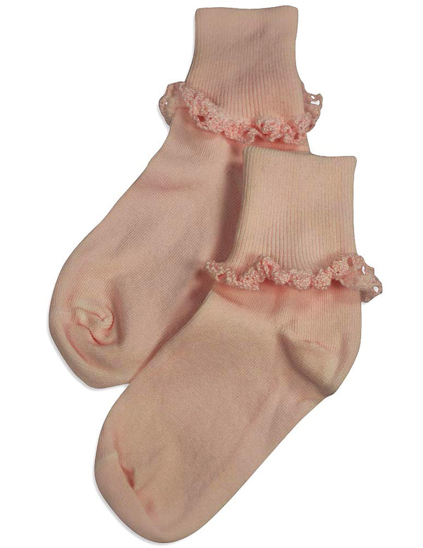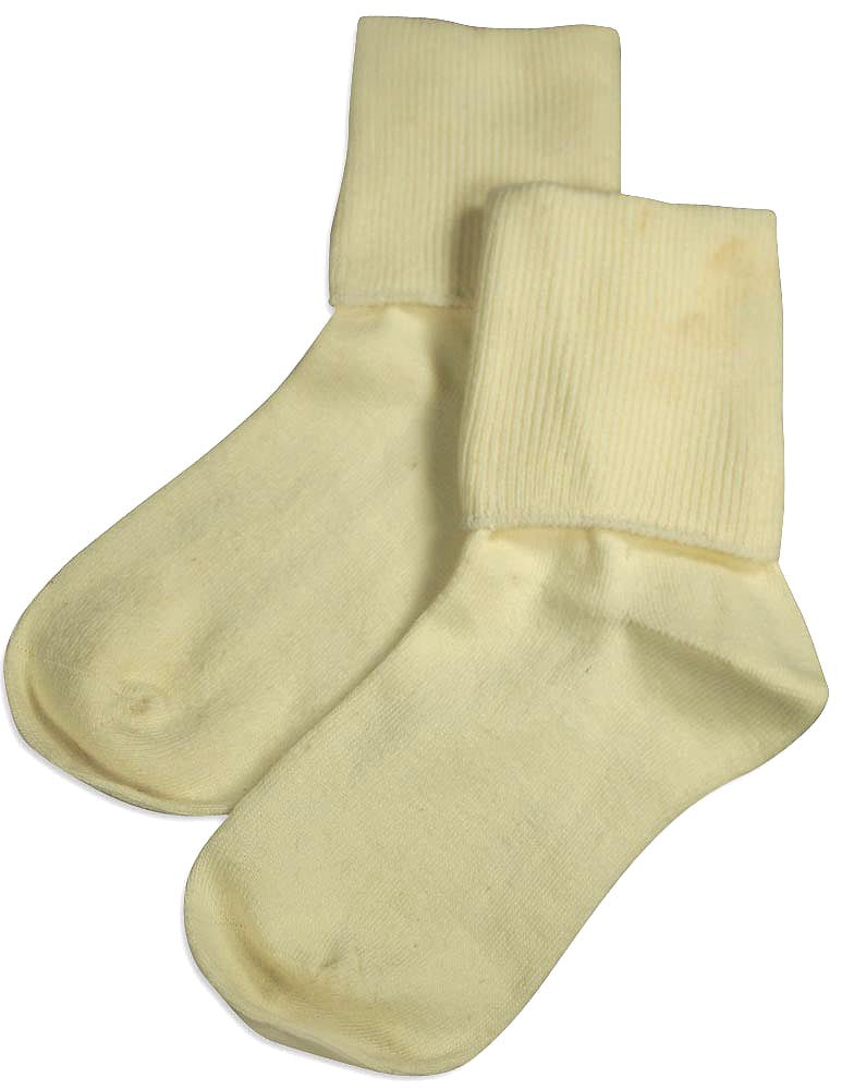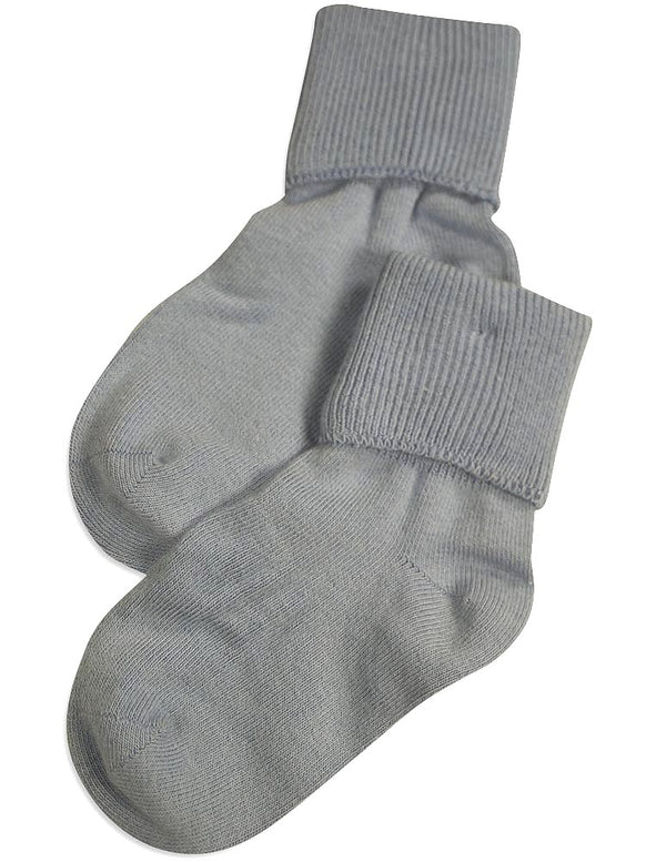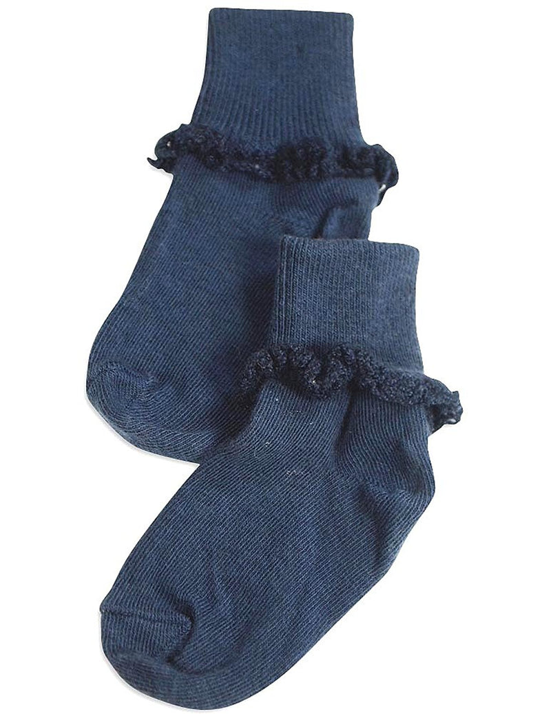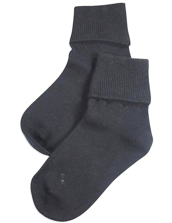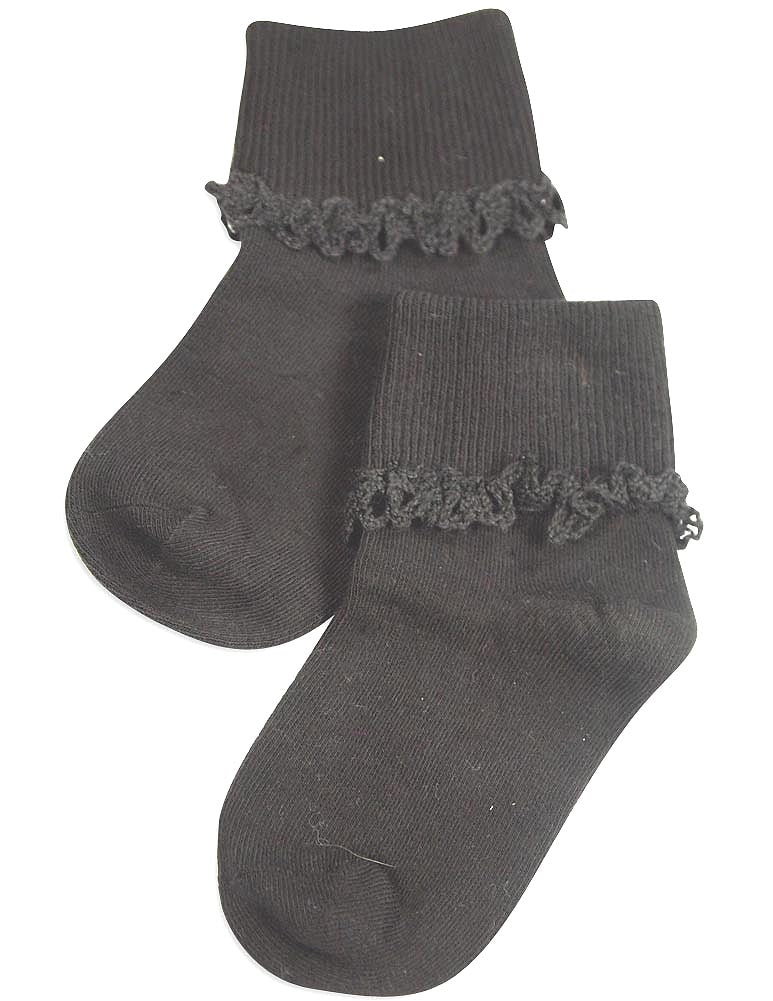 Tic Tac Toe - Girls Turn Cuff Socks, White, Ribbed Top, Handlinked, Seamless Toe, Size XXS = 3 - 4 1/2 XS = 4-5, 80% Cotton 18% Nylon 2% Spandex, Made in Korea, #31773 31-773
