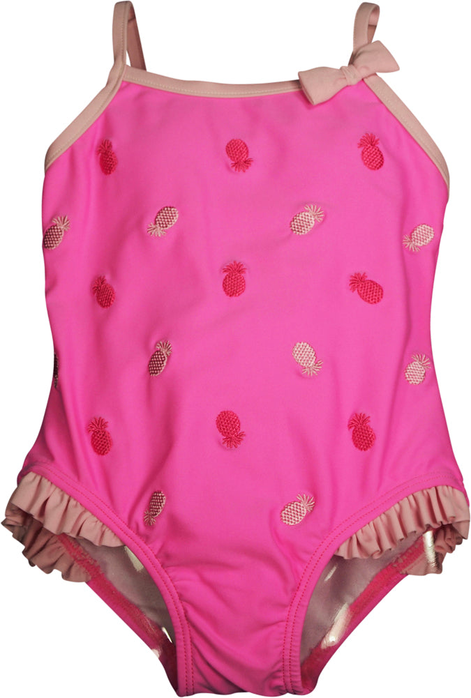 - ADD CUTENESS with the bow, ruffle trimming at the leg holes and the embroidered pineapples.
