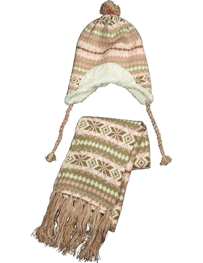 Winter Warm-Up Lined Snowflake Knit Big Girls' Hat Scarf Set